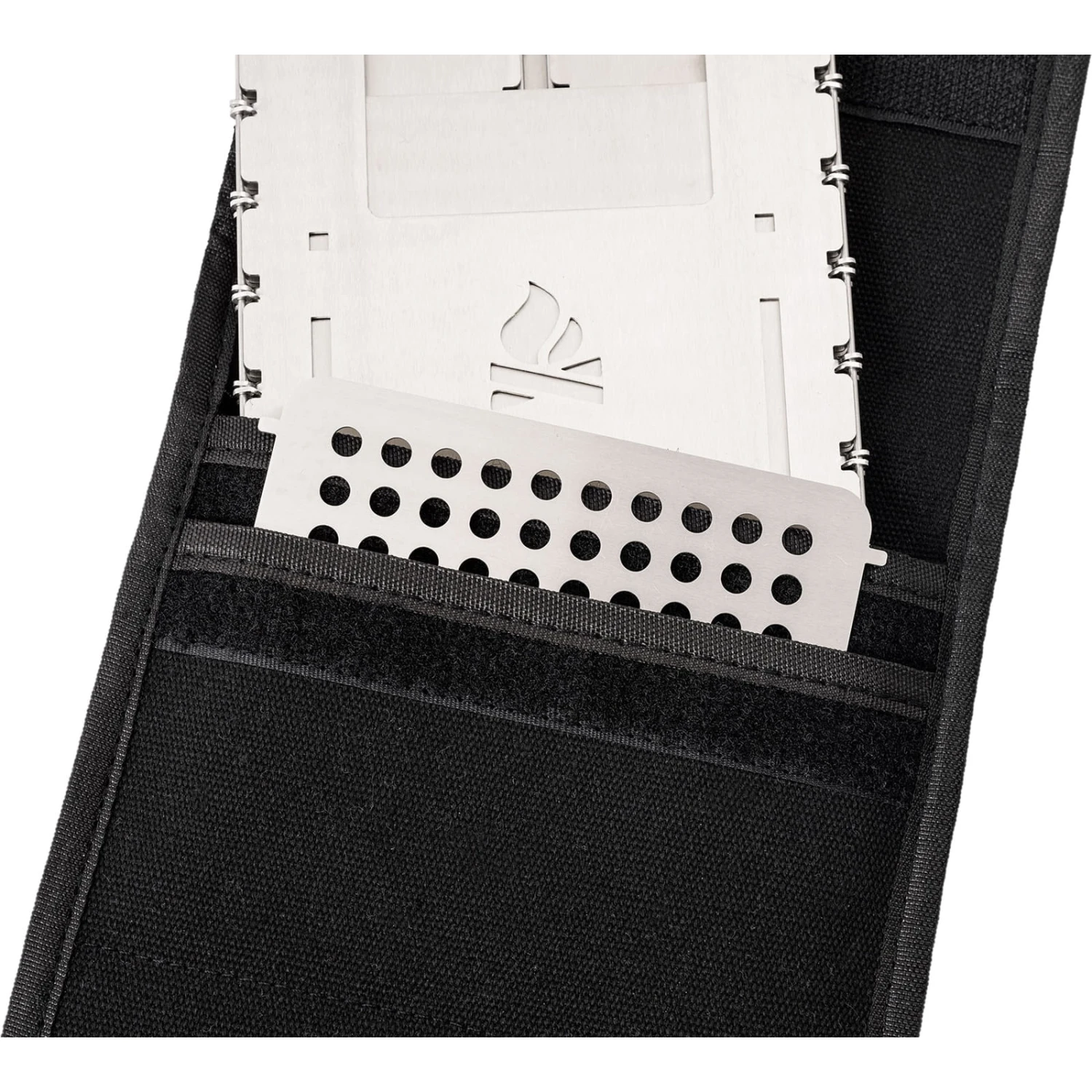 Die perfekte Outdoor-Tasche für die Bushbox XL. Ein praktisches und sinnvolles Ausstattungsteil (die Bushbox XL wird in einer leichten Versandtasche aus Baumwolle geliefert): Das hochstrapazierfähige Gewebe hält einiges aus, verfügt über einen stabilen D-Ring zur Befestigung (etwa außen am Rucksack) und hat zwei separate Innenfächer, so dass zum Beispiel auch der optionale Universalrost in einem eigenen Fach untergebracht werden kann.