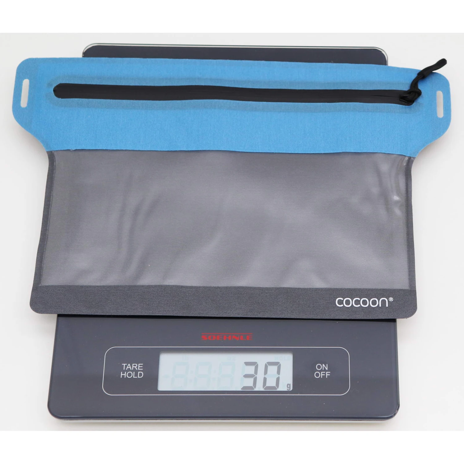 Die Zippered Flat Document Bag S (23 x 18,5 cm außen) Dokumententasche von COCOON ist eine wasserdichte (nicht unterwasserdicht), flache Tasche zur Aufbewahrung von Reisedokumenten, Landkarten, Tablets, Smartphones etc. Die transparente Folie auf der Vorderseite ist touch-screen-fähig. Komplett geschweißt – keine Nähte. Mit YKK Aqua Guard Water Repellent Zipper.
