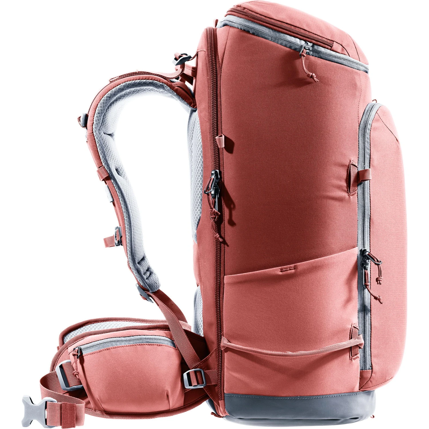 Der Jaypack 34+ von deuter ist ein durchdachter, geräumiger Fotorucksack und perfekt für alle professionellen Fotografen, die in jeder Situation den entscheidenden Moment einfangen möchten. Ob unterwegs in der Stadt oder mitten in der Natur, das Alpine Tragesystem kombiniert einen festen und sicheren Sitz mit höchstem Tragekomfort und angenehmer Belüftung. Die ergonomisch geformten Polster des Tragesystems schmiegen sich an dem Rücken an und verteilen das Gewicht der Fotoausrüstung gleichmäßig und körpernah. Verstellbare Schulterträger, Brustgurt und Lastkontrollriemen sowie eine ausreichende Rückenlänge ermöglichen zudem eine optimale Übertragung der hohen Last auf die gepolsterten Hüftflossen und sorgen so für einen rückenschonenden Tragekomfort. Das vollständig modulare Hauptfach ermöglicht eine äußerst flexible Aufteilung und Organisation mit unterschiedlichen gepolsterten Klett-Trennwänden, je nach individuellen Anforderungen der Tour und der Größe des Equipments. Das abschließbare Rückenpanel mit umlaufendem Reißverschluss ermöglicht einen schnellen Zugriff auf die Fotoausrüstung und bietet mit drei Reißverschlusstaschen Stauraum für kleinere Ausrüstung. Das abschließbare Reißverschluss-Frontfach mit gepolstertem Laptopfach, diversen Einschub- und Reißverschlussfächern, Schlüsselclip und Stiftehalter bietet weiteren Stauraum. Zwei elastische Seitentaschen bieten Platz für Trinkflaschen oder ein kleines Stativ. Dank der Volumenerweiterung mittels Reißverschlussbag lässt sich das Deckelfach um 4 Liter Packvolumen erweitern und bietet zusätzlichen Platz für persönliche Gegenstände und Ersatzkleidung. Vier abnehmbare Gurtbänder und ein Schlingen-Gurtband mit Aluminiumhaken bieten darüber hinaus vielfältige Möglichkeiten, weitere Ausrüstung wie Matten, Jacken oder ein großes Stativ individuell zu befestigen. Auch das aufgeräumte, reduzierte Äußere sowie der sichere Stand durch das TPU Bodenpanel erleichtern das Handling und machen den Rucksack zu einem versierten Begleiter.