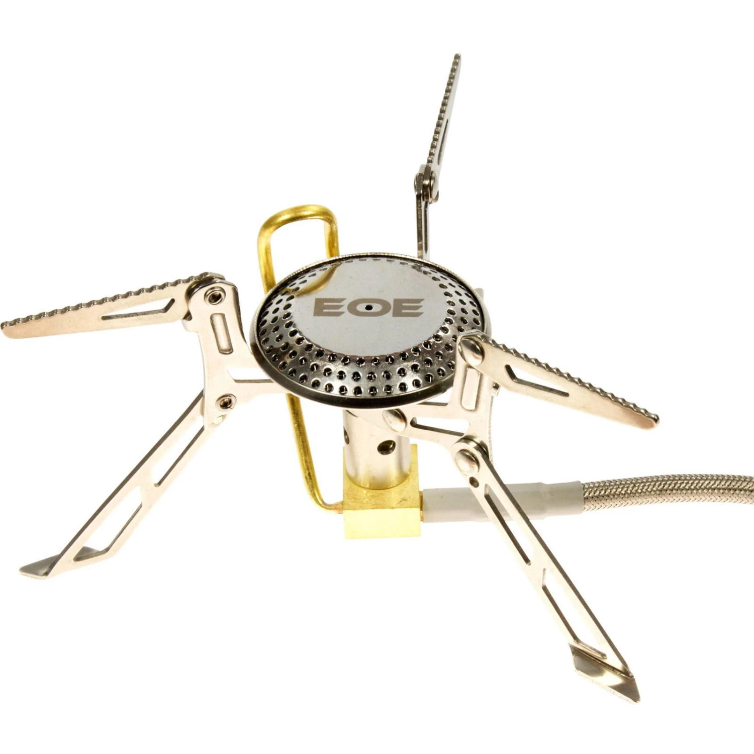 Der EOE Cobaltum ist ein Kocher mit Schlauchleitung und bringt 155 g auf die Waage. Der Schwerpunkt verlagert sich deutlich nach unten, indem der Kocher nicht direkt auf eine Kartusche geschraubt wird. Dadurch ist die ganze Konstruktion erheblich standfester, gerade bei der Verwendung von großen und schweren Töpfen. Die Flamme ist direkt am Ventil an der Kartusche sehr fein regulierbar. Damit er bei Minustemperaturen Leistungsfähiger ist, wird das Gas vorgewärmt. Durch die Verwendung edelster Materialien ist der Gaskocher relativ leicht und läßt sich durch seine zusammenklappbaren Beine und Auflagenarme sehr klein zusammenfalten. Er paßt damit zusammen mit einer 230g Kartusche in die meisten Töpfe und ist somit ideal für Radfahrer, Paddler oder Wanderer, die ihr Gepäck klein verstauen müssen. Auf den Cobaltum Gaskocher passen alle Schraubkartuschen (DIN EN 417) aller namhaften Hersteller und so ist für Nachschub weltweit gesorgt.