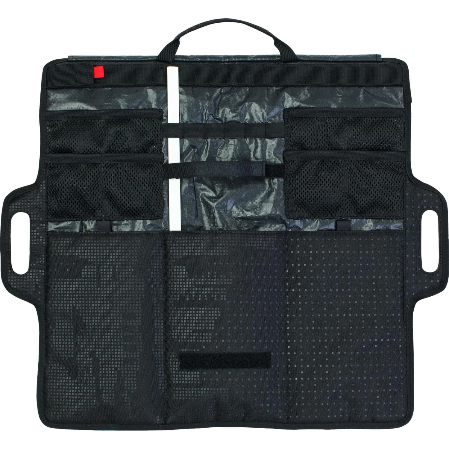 Die Gear Wrap M von Evoc ist eine praktische Packtasche mit breitem Tragegriff und Organizer innen für den sicheren Transport von E-Bike-Zubehör. Die Ausrüstungstasche hat mehrere Fächer und Schlaufen für die übersichtliche und organisierte Aufbewahrung von E-Bike-Akku, -Display, -Netzteil, Werkzeug und mehr. Die Gear Wrap M lässt sich aufhängen oder aufspannen und kann als vertikaler Tool Organizer genutzt werden, damit der Inhalt schnell und übersichtlich zur Hand ist. Ein mitgelieferter Glasfaserstab dient zur Verstärkung der Organizer Funktion. Das Innenmaterial ist aus wasserdichtem und leicht zu reinigendem Zeltmaterial. Die Packtasche lässt sich kompakt zusammenrollen und mit Klettverschlussbändern verschließen oder zusätzlich komprimieren.