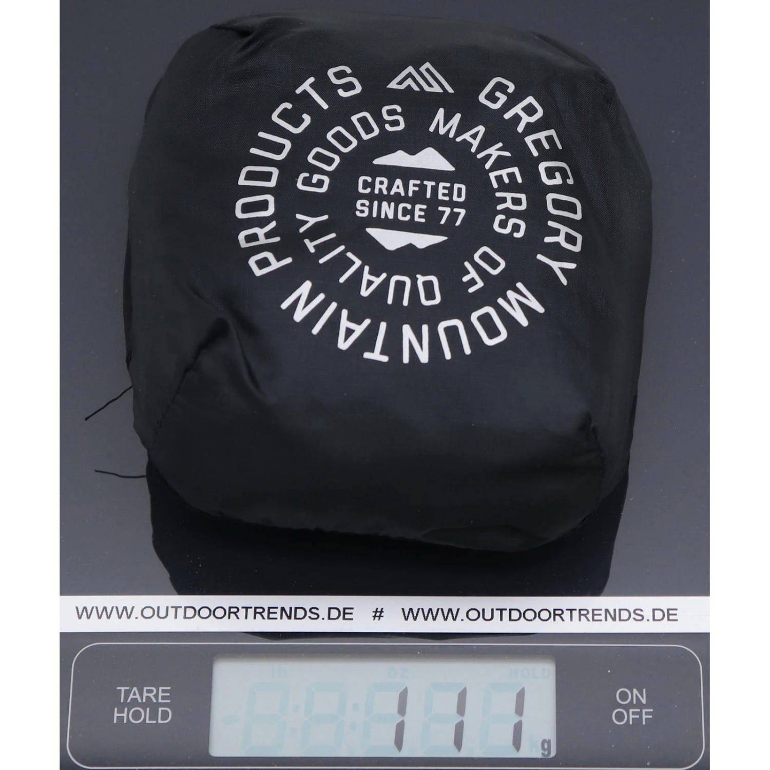 Auch in der wasserdichten Regenhülle Raincover von Gregory steckt Recyclingpolyester, was den CO2-Fußabdruck dieses Modells noch weiter senkt. Verlässlicher Schutz vor den Elementen durch wasserdicht getapte Nähte, elastischer Kordelzug mit Hüftgurtschlaufen und verstellbarer Hakenschließe zur Befestigung über dem Tragesystem, großformatiges reflektierendes Logo für bessere Sichtbarkeit in der Dämmerung, integriertes Staufach mit sicherer Verschlussklappe und kleine Öffnung am Boden für den Ablauf von Kondenswasser.