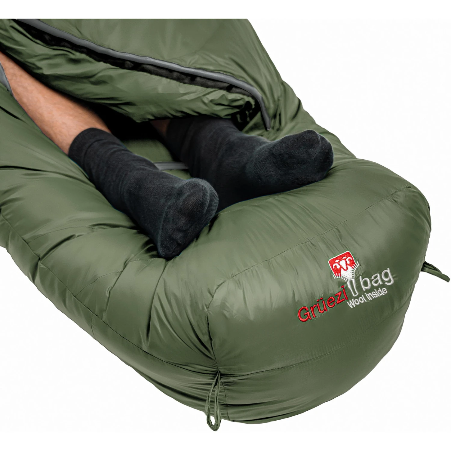 Der Biopod Wolle Survival XXL von Grüezi Bag mit integrierten Moskitonetzen ist der ideale Schlafsack für Naturliebhaber die gerne mal ohne Zelt am See oder am Fluss bei hoher Luftfeuchtigkeit übernachten. Damit lästige Stechmücken nicht stören, wurde ein 3D-Moskitonetz über dem Kopf integriert. Das Netz wird durch drei kleine Rundbogenstangen aufgespannt und schützt so vor den kleinen ungebetenen Gästen. Aufbewahrt wird das Netz in der praktischen Tasche am Packsack. Zusätzlich gibt es eine Belüftungskappe im Fußbereich, diese ist auch mit einem feinmaschigen Moskitonetz versehen. Der Biopod Wolle Survival XXL ist unempfindlich gegen Feuchtigkeit und kann somit fast überall eingesetzt werden. Durch die Wollfüllung, die wie eine natürliche Klimaanlage wirkt, ist ein hervorragendes Schlafklima gegeben. Die verstärkte Außenhülle schützt vor Schmutz und Feuchtigkeit. Der Außenstoff des Survival XXL ist besonders robust und widerstandsfähig und zudem auf der Unterseite mit Gumminoppen ausgestattet, dies verhindert ein lästiges Abrutschen von der Isomatte. Praktisch ist auch die innovative Fußbelüftung, bei der die Füße bequem aus dem Schlafsack gestreckt werden können, ohne dass sie im Schmutz liegen. Noch ein kleines aber feines Detail ist das Kopfkisseneinschubfach, hier kann eine Fleecejacke eingesteckt werden und schon hat man ein unverrutschbares Kopfkissen.