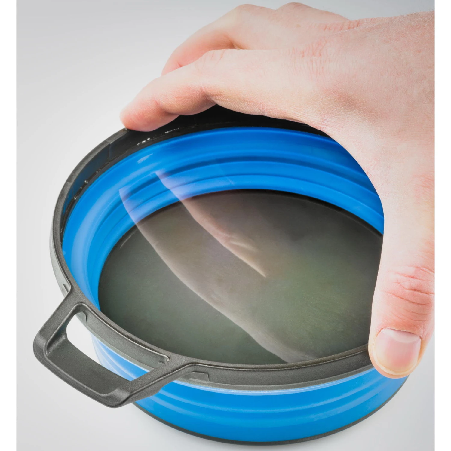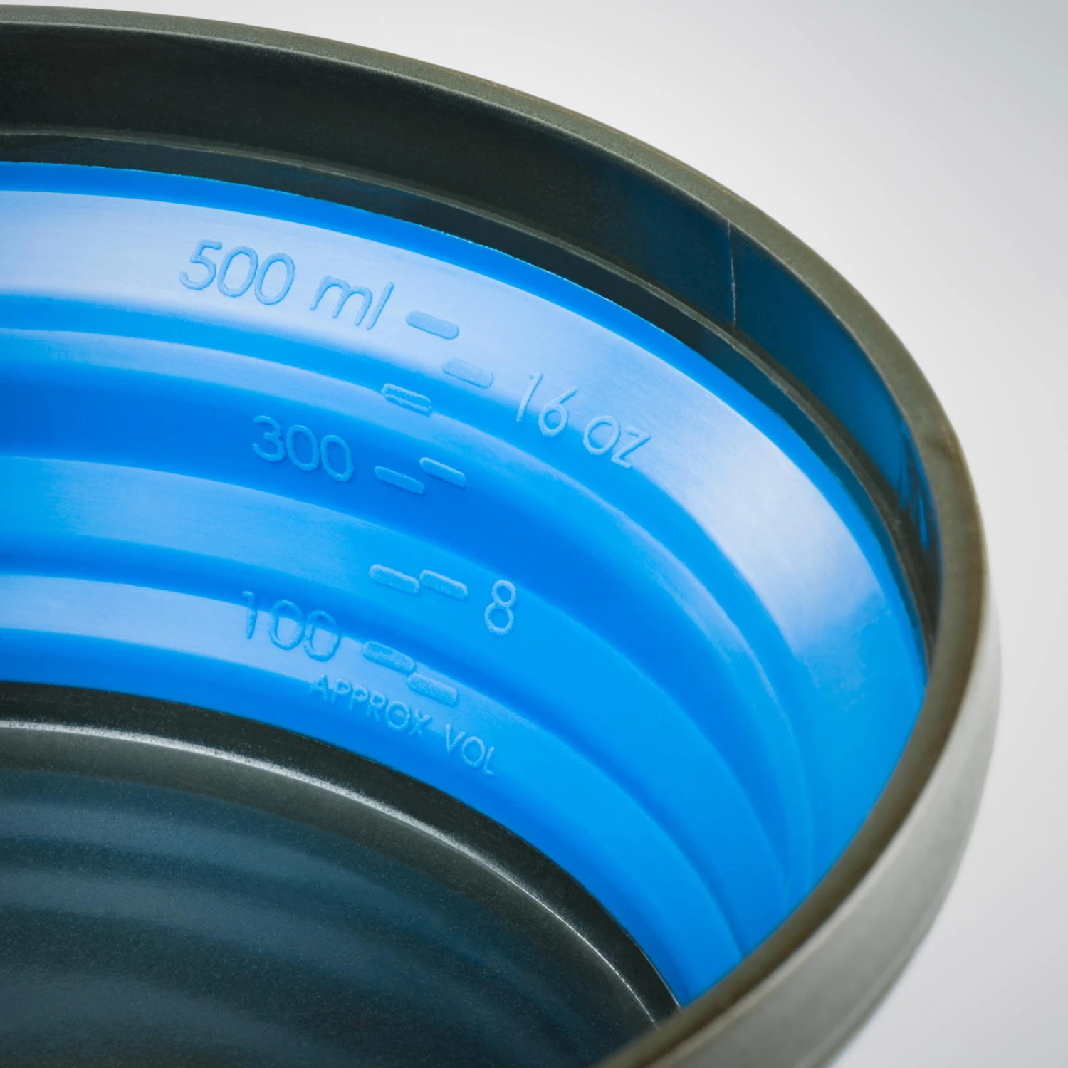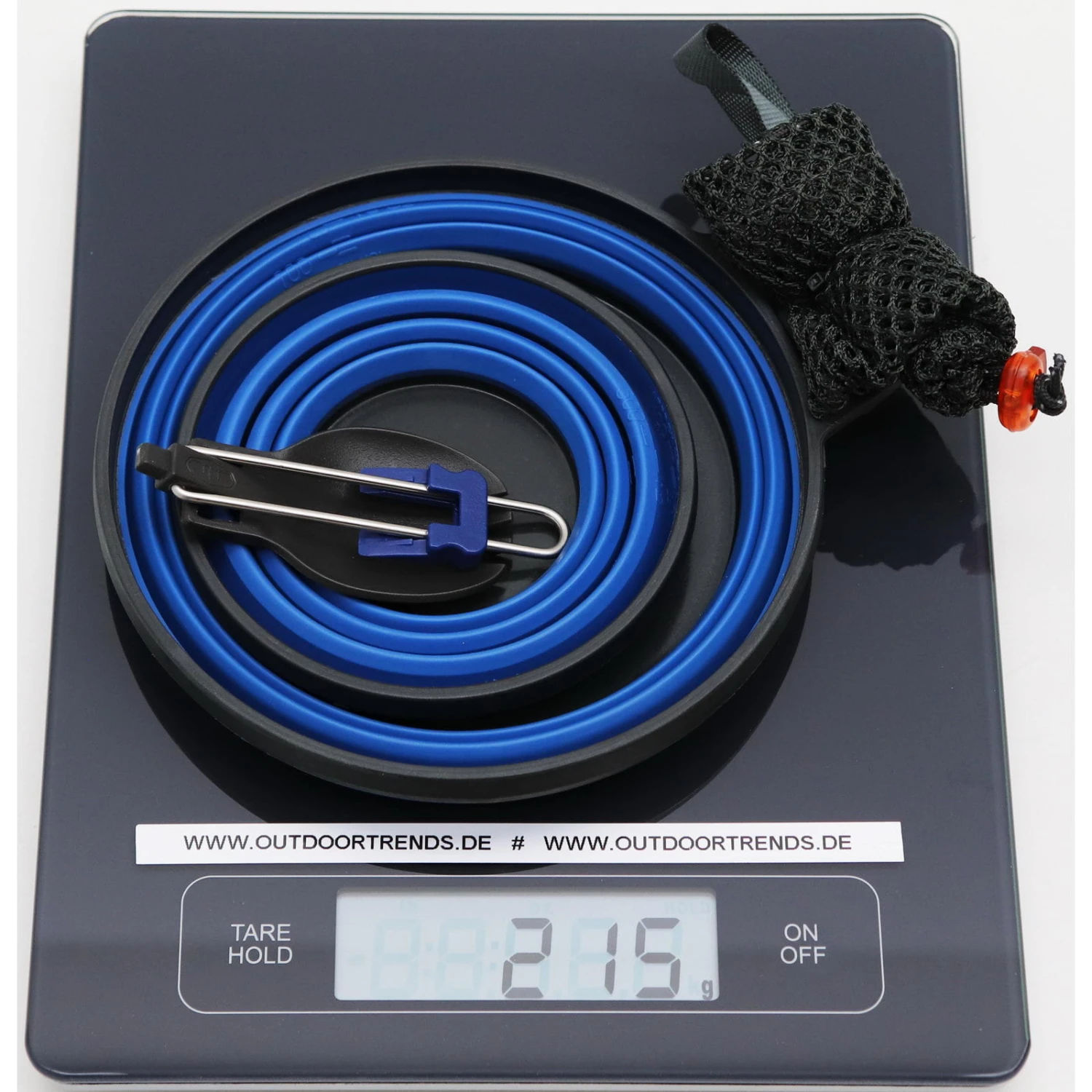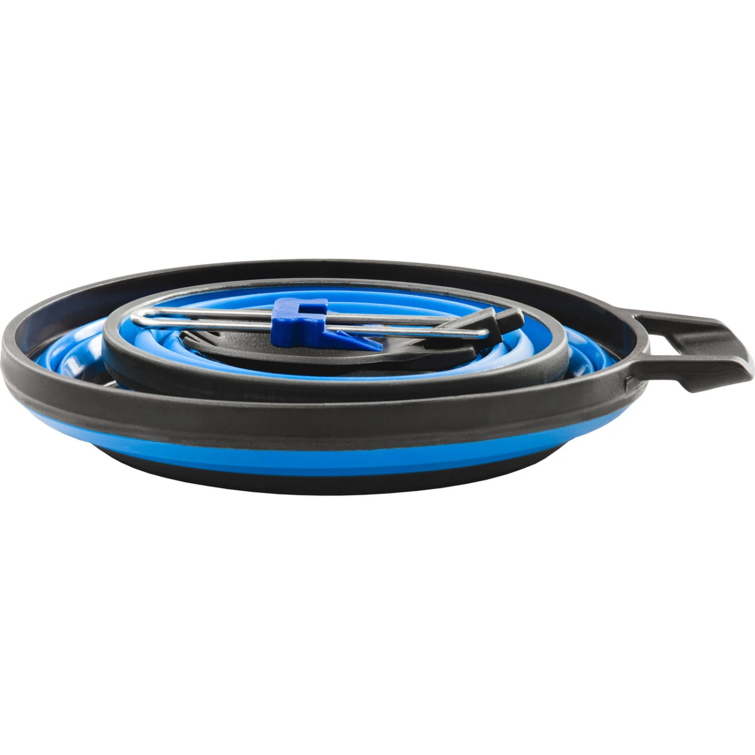 Das Escape 1 Person Table Set von GSI ist ein Geschirrset mit einem Escape Cup, einer Escape Bowl und einem cleveren Göffel, alle Teile lassen sich auf ein kleines Packmaß zusammenklappen und in der im Lieferumfang befindlichen Netztasche verstauen. Die Schüssel und der Becher haben einen robusten Nylonrand und -boden um die Form zu behalten und unerwartetes Schwappen oder Verschütten zu verhindern, zusätzlich ist eine praktische Skala eingegossen. Der Göffel lässt sich auf eine Länge von nur 9,5 cm zusammenklappen, ausgeklappt und verriegelt besitzt er eine Länge von 15,5 cm.