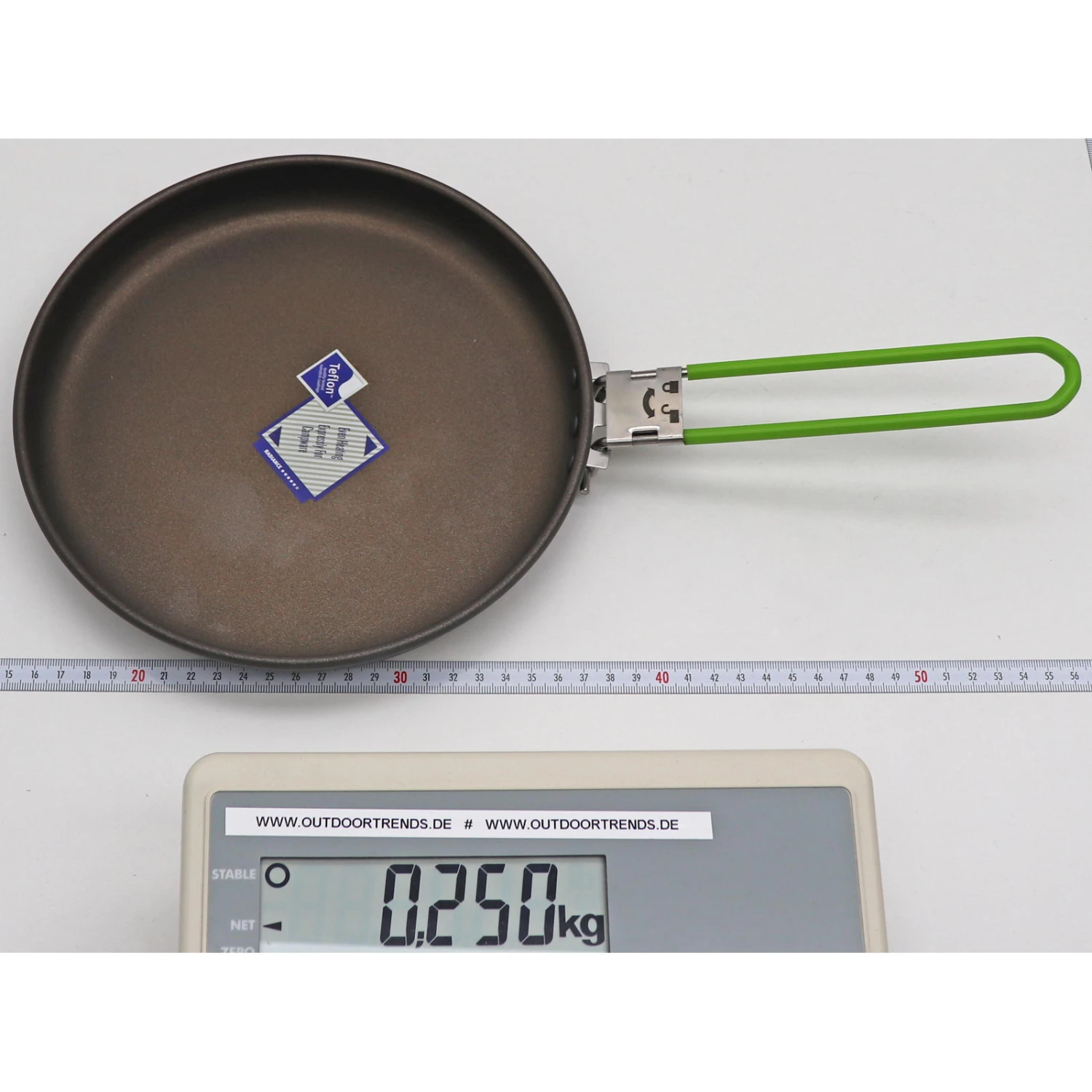 Merkmale Pfanne: hart-anodisierter Aluminiumboden mit Teflon Beschichtung innen, klappbarer Griff mit Verriegelung und silikonüberzogenem Griff