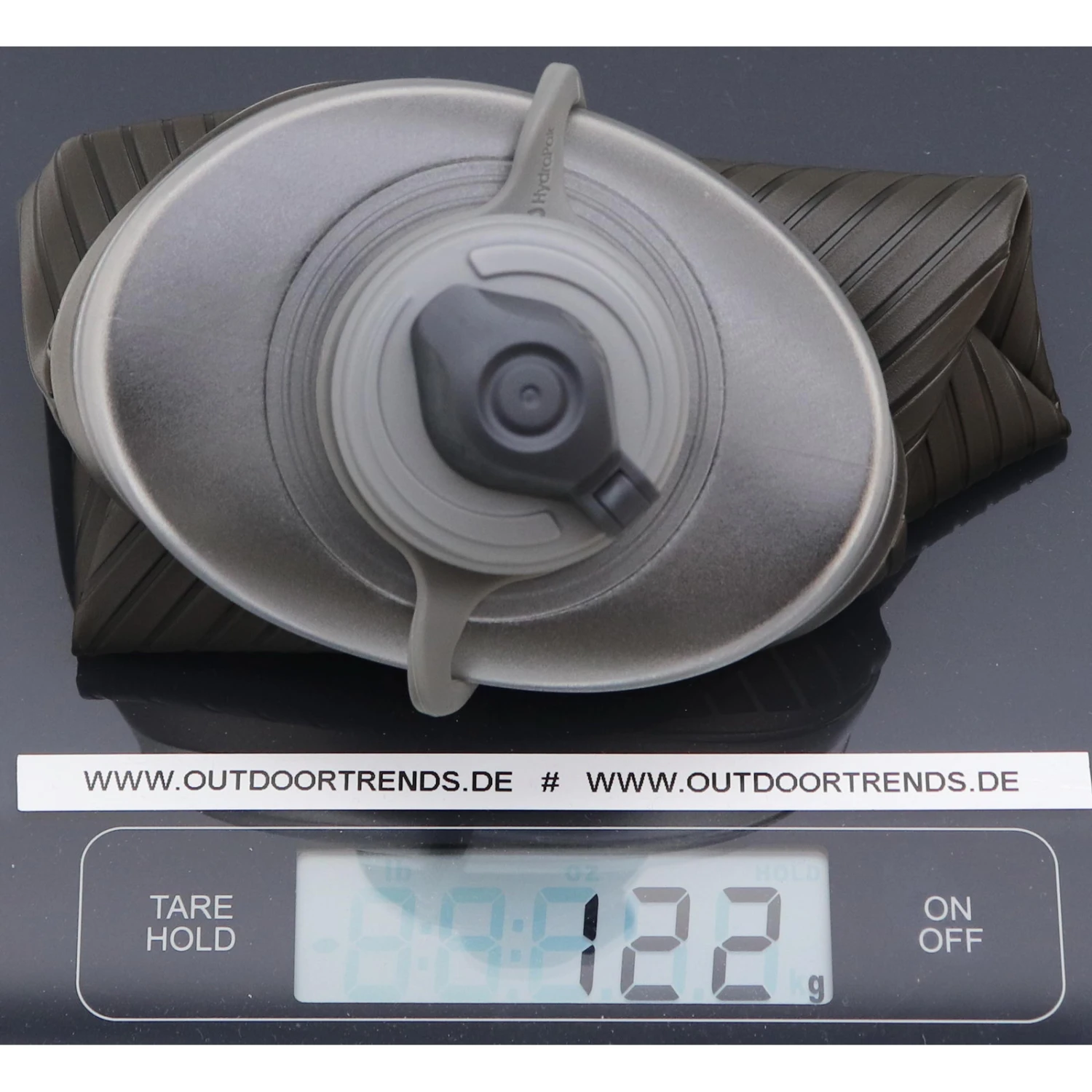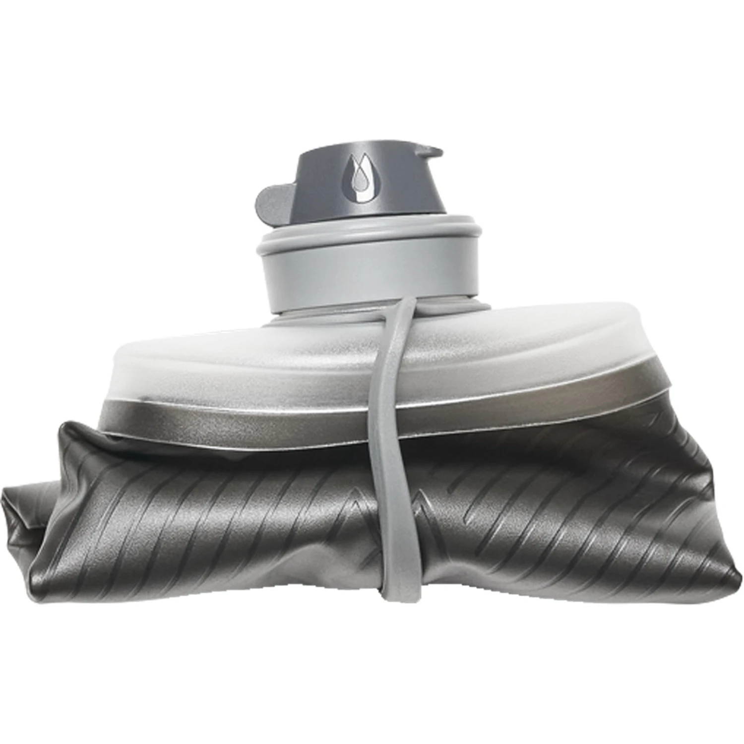 Die Flux 1.5L von HydraPak hat ein Fassungsvermögen von 1,5 Liter und ist dank ihrer flexiblen, ovalen Form leicht zu transportieren und extrem klein verpackbar. Die überarbeitete Version ist breiter und niedriger geschnitten, um einen stabileren Stand zu gewährleisten. Sie verfügt außerdem über ein Trinkventil mit Staubschutzkappe für eine schnelle Flüssigkeitszufuhr und ein einfaches Öffnen und Schließen der Trinköffnung mit einer Hand ohne direkten Kontakt mit schmutzigen Händen. Im leeren Zustand lässt sich die Flasche platzsparend zusammenrollen und klein komprimieren. Dazu dient die Schlaufe am Deckel, mit der die Flasche zum Beispiel auch am Rucksack (mit optionalem Materialkarabiner) befestigt werden kann. Das Ventil zum einfachen Öffnen und Trinken, die Fingerschlaufe zum Transportieren und Fixieren sowie das um 50% geringere Gewicht im Vergleich zu den meisten Hartflaschen machen sie zu einer flexiblen Trinkflasche für alle Gelegenheiten.