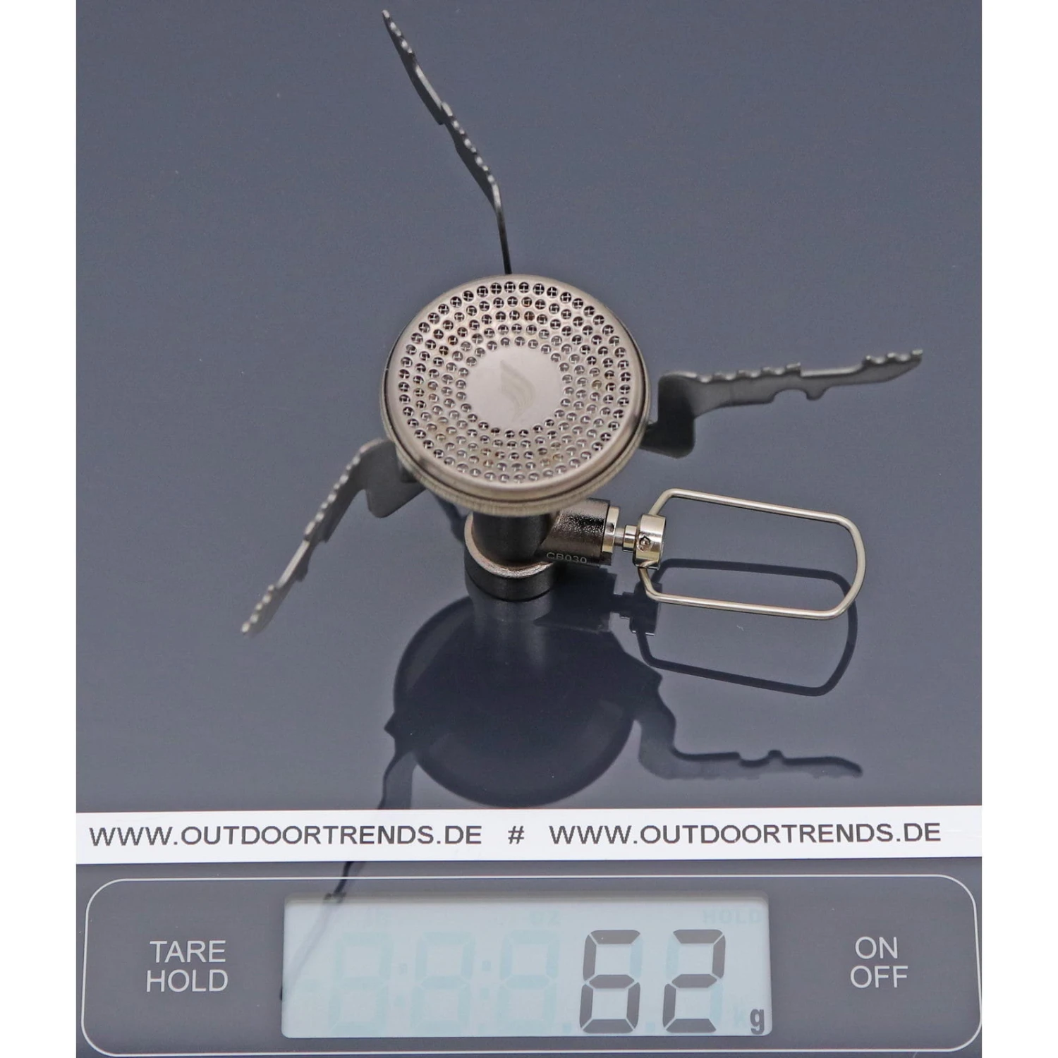 | Gewicht ca. | Standfuß: 30 g, Kocher: 62 g, Topf: 145 g |