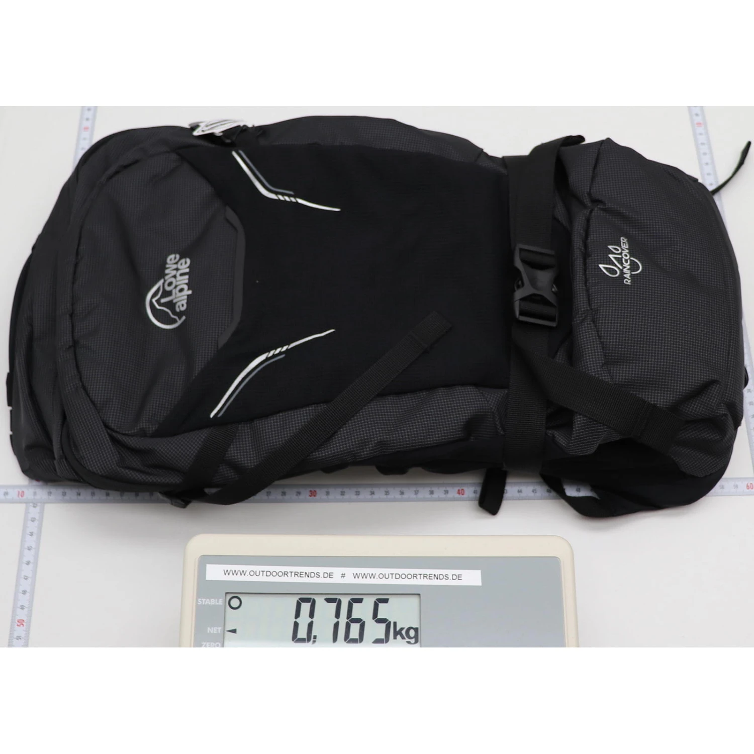 | Merkmale | Blinklichthalterung, Brustgurt mit Signalpfeife, Einschubfach innen, elastisches Einschubfach vorne, höhenverstellbarer Brustgurt, integrierte Regenhülle in separater Reißverschlusstasche am Boden, kleines Reißverschlussfach oben drauf, Netztasche innen (mit Reißverschluss), Schlauchdurchführung für Trinksystem, Schlüsselhalterung, seitliche Kompressionsriemen, Stockhalterung, Tragegriff oben, zwei elastische Einschubfächer seitlich |