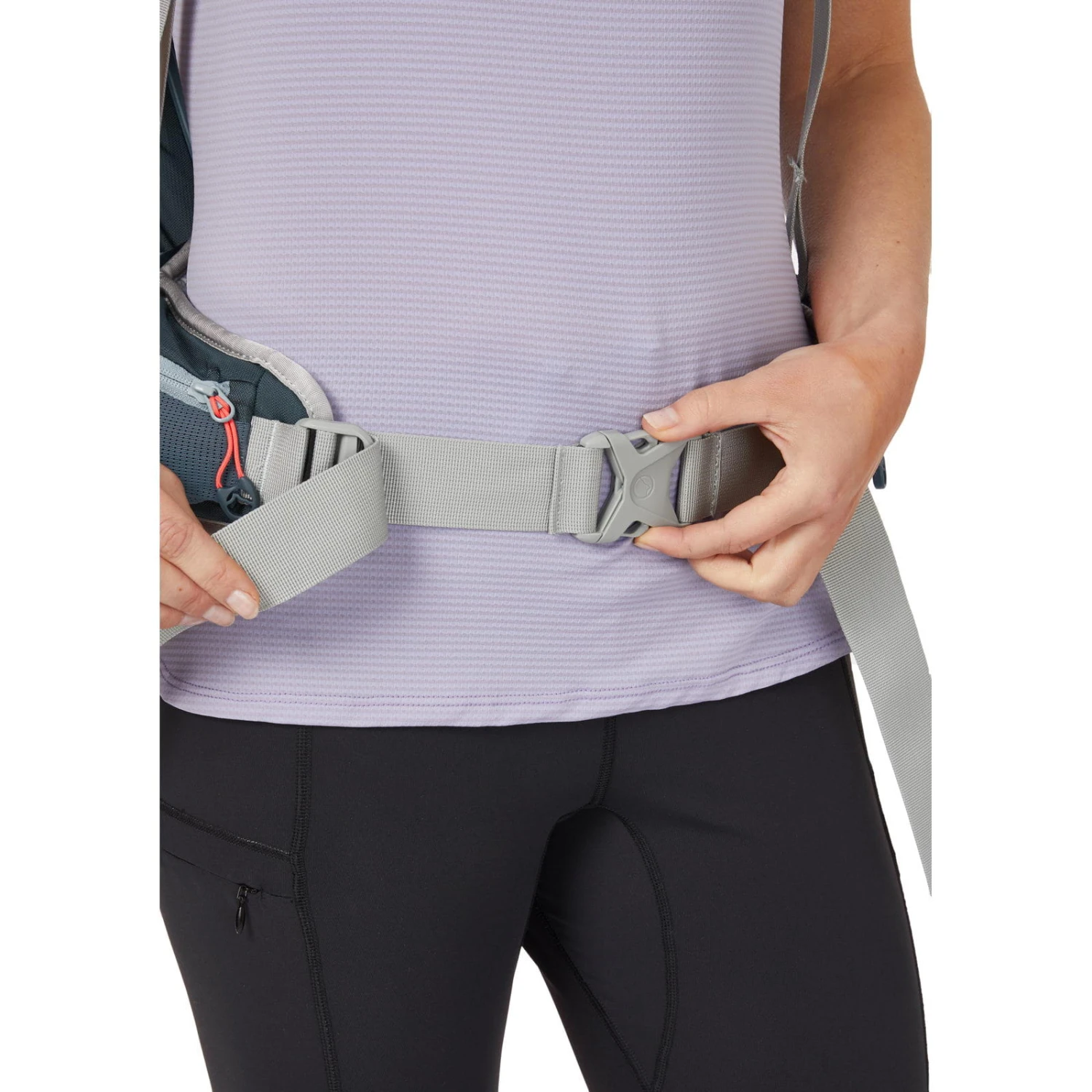 Der AirZone Trail ND33 von Lowe Alpine für Damen sorgt auch auf anspruchsvollen Touren und heißen Sommerwanderungen für angenehme Frische. Mit seinem schmaleren Design ist er ideal für Frauen oder Personen mit kleinerer Statur. Der Wanderrucksack ist ein toller Allrounder mit atmungsaktiver, belüfteter Rückenplatte für optimale Luftzirkulation und angenehm kühlen Tragekomfort, ideal für Tagesausflüge, Trekking-Touren oder Übernachtungen in Berghütten. Das leichte AirZone™-Rückensystem ist mit einem straffen Netzgewebe überzogen und die große, eingelassene Wölbung schafft einen Zwischenraum für die Luftzirkulation zum Rücken. So sammelt sich weniger Schweiß an und man bleibt auch in der größten Wildnis angenehm kühl und trocken. Das geräumige Hauptfach mit 33 Litern Fassungsvermögen bietet ausreichend Platz für alles, was man unterwegs braucht. Die doppelten seitlichen Kompressionsriemen sorgen für Stabilität und der Hüftgurt lässt sich im Handumdrehen individuell anpassen. In den Taschen am Hüftgurt finden Proviant und Karten problemlos Platz und auch die seitlichen Stretch-Taschen für Trinkflaschen sind gut erreichbar. In den erweiterbaren Seitentaschen ist genug Platz für einen Hut oder zusätzliche Kleidung und die Sicherheitstasche unter dem Deckel und der Schlüsselclip schützen Wertsachen. Der AirZone Trail ND33 ist mit Trinksystemen kompatibel und die sicheren TipGripper-Halterungen für Wanderstöcke sorgen für angenehmen Tragekomfort bei jeder Wanderung. Die integrierte Regenhülle lässt sich schnell aus dem Rucksack ziehen und schützt vor plötzlichen Wetterumschwüngen.