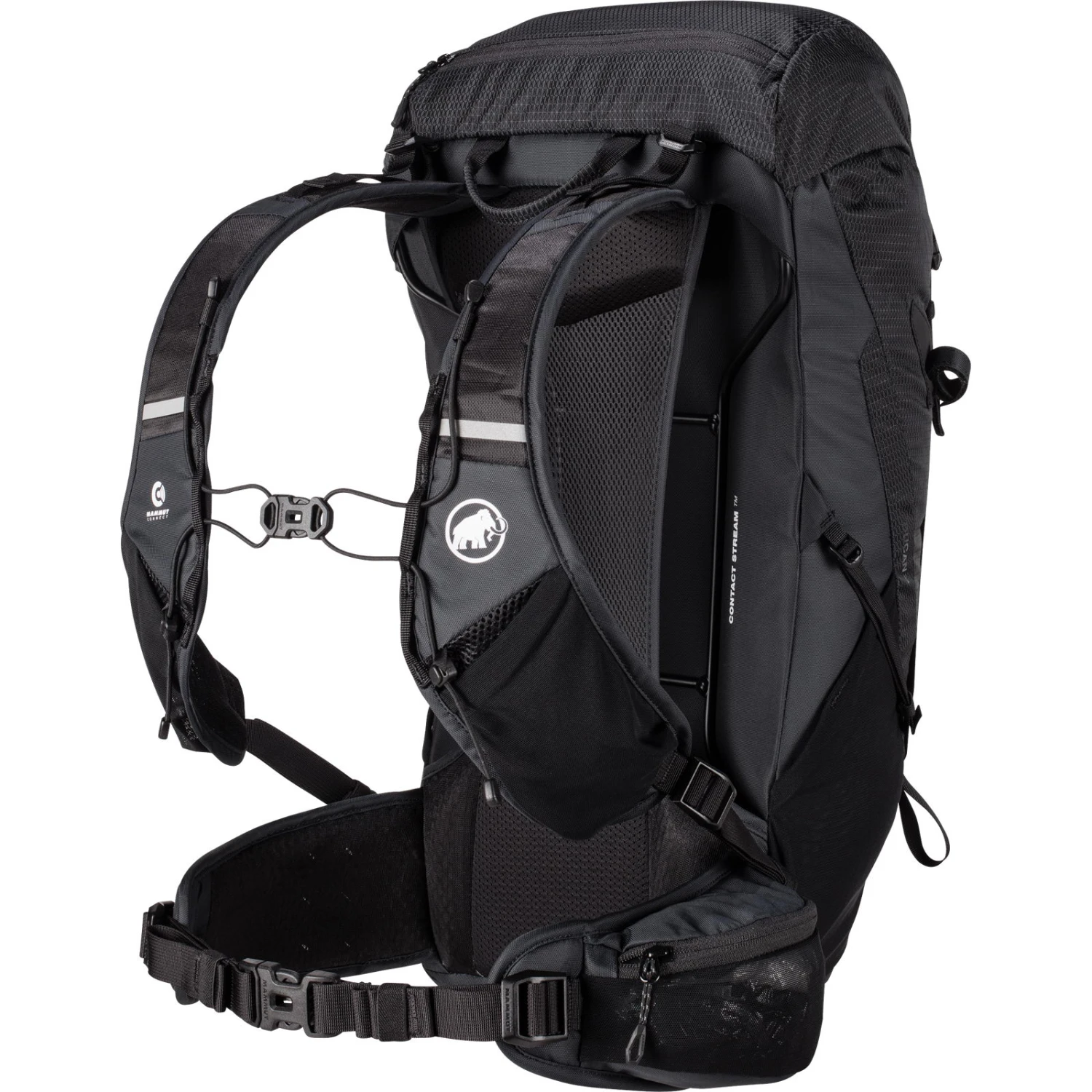 | Merkmale | Deckelfach mit Reißverschluss außen, Deckelfach mit Reißverschluss innen (aus Mesh), Einschubfach innen, elastische Kordelfixerung auf einem Hüftflügel, elastischer Brustgurt, elastisches Reißverschlussfach auf einem Hüftflügel, gepolsterter Hüftgurt, Halterung für Trinkblase, höhenverstellbarer Brustgurt, integrierte Regenhülle in separater Reißverschlusstasche am Boden, kompatibel zu MAMMUT-Connect, Lastkontrollriemen, Materialschlaufen auf den Schulterträgern für Brille etc., Netzrücken Tragesystem, Pickelhalterung, reflektierende Elemente, Schlauchdurchführung für Trinksystem, Schlüsselhalterung, seitliche Kompressionsriemen, Stockhalterung, Trageschlaufe hinten oben, zwei elastische Einschubfächer auf den Schulterträgern, zwei elastische Einschubfächer seitlich |