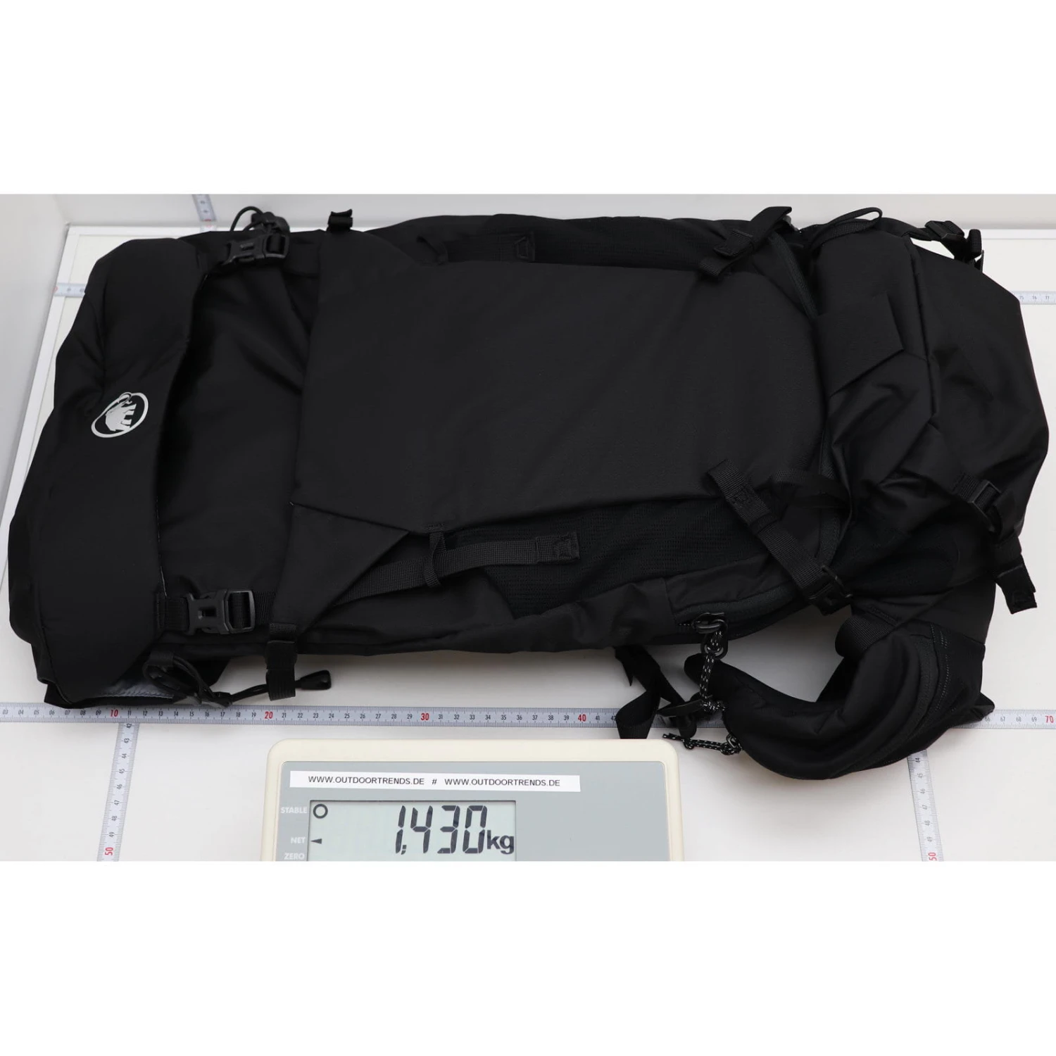 Der Lithium 40 von Mammut für Herren ist ein leichter und kompakter Wanderrucksack mit top Ausstattung, er ist optimal für anspruchsvolle Mehrtagestouren. Der Lithium 40 ist mehrheitlich aus recycelten Materialien hergestellt und die dauerhaft wasserabweisende Imprägnierung ist PFC-frei. Durch die verstellbare Rückenlänge besitzt der Trekkingrucksack einen hohen Tragekomfort und die Luftkanäle im 3D EVA-Schaum sorgen am Rücken für eine gute Kühlung. Für zusätzlichen Tragekomfort sorgen anatomisch geformte, weich gepolsterte Hüft- und Schultergurte. Der Lithium 40 besitzt eine umfangreiche Ausstattung wie z.B. eine Regenhülle, ein getrenntes Bodenfach, eine Stock- und Pickelhalterung oder einen gepolsterten und abnehmbaren Hüftgurt mit einer ausklappbaren Tasche für das Smartphone.