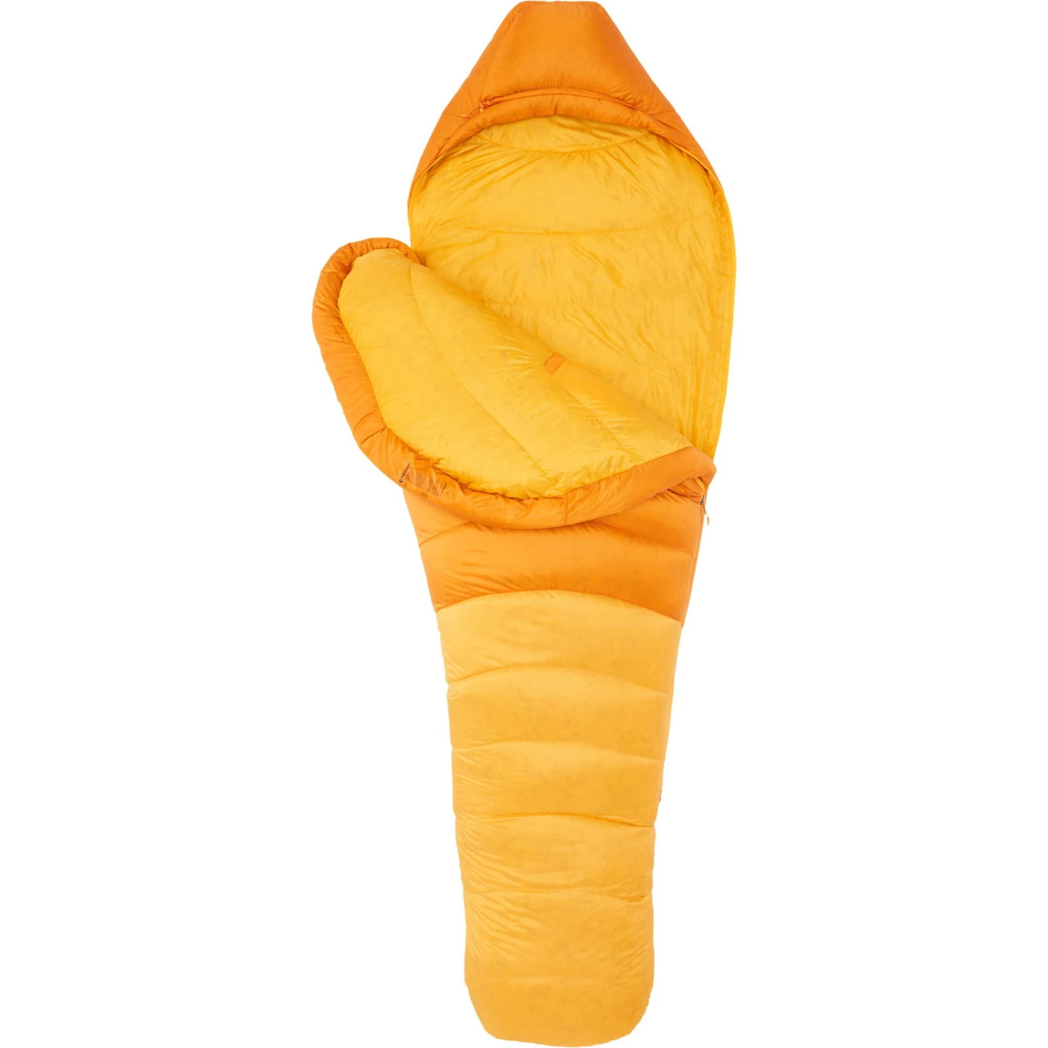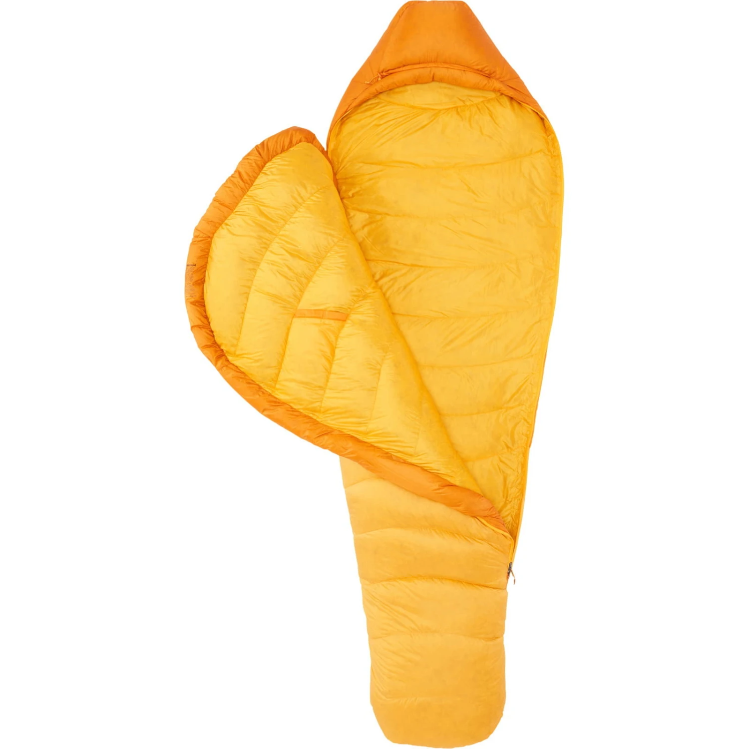 | Merkmale | anatomisch geformte Fußbox mit umlaufender Konstruktion für mehr Wärme, EN-getestet für zuverlässige Temperatureinstufung, Hauptreißverschluss mit Verklemmschutz und umklappbarer zweiter Reißverschluss für zusätzliche Belüftung und einfachen Zugang, inklusive Aufbewahrungsbeutel mit Kordelzugverschluss, inklusive Packsack, innere Aufbewahrungstasche und Wärmertasche in der Fußbox, Kapuze mit mehreren Baffles und Kordelzug, Kragen mit Daunenfüllung, zertifizierte Daunen mit 650er Bauschkraft mit DownDefender für bessere Wasserbeständigkeit bei feuchten Bedingungen |