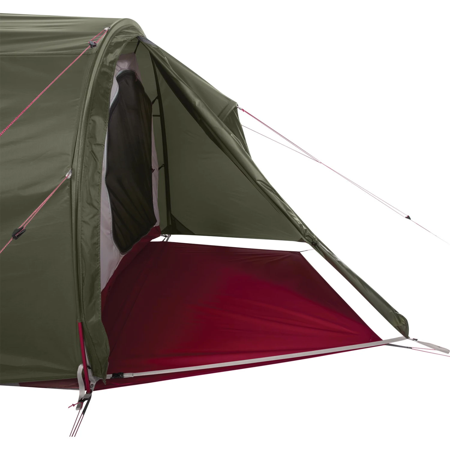 Das Tindheim 2 von MSR ist ein strapazierfähiges, wetterfestes und stabiles Tunnelzelt für zwei Personen. Der geräumige Innenraum mit ca. 1 Meter Giebelhöhe und die große Apsis bieten jede Menge Platz zum Verstauen von Ausrüstung oder Ausharren, bis ein Regenschauer endet. Die im Lieferumfang enthaltene Bodenplane deckt den Apsisbereich ab, um die Ausrüstung vor nassem Boden zu schützen. Die seitlichen Aufbewahrungsfächer innen bieten zusätzlich Stauraum und auf der mitgelieferten Wäscheleine lassen sich nasse Sachen einfach trocknen. Das Tindheim 2 hat leicht erreichbare Überzelt-Belüftungsöffnungen und eine doppelwandige Tür mit Reißverschluss (Stoff/Netz) zur Regulierung der Luftzufuhr. Dank des sturmsicheren Überzelt-Designs kann das Zelt im Regen aufgeschlagen werden, ohne dass der Innenbereich nass wird. Weitere Besonderheiten des stabilen und windfesten Tindheims 2 ist die strapazierfähige Doppelbogenkonstruktion mit besonders robusten Kordelzügen, reflektierende Abspannleinen (3 mm) und Ösen zum Anpassen der Stangen, die auch Sturmwetter standhalten. Ein feststellbarer Reißverschluss hält die Tür der Apsis auch bei plötzlichen Windböen fest verschlossen. Für alle, die sich Komfort und zuverlässigen Schutz für jedes Wetter wünschen, besticht das für drei Jahreszeiten geeignete Tindheim 2 mit seiner MSR-Qualität durch viel Platz und Stabilität.