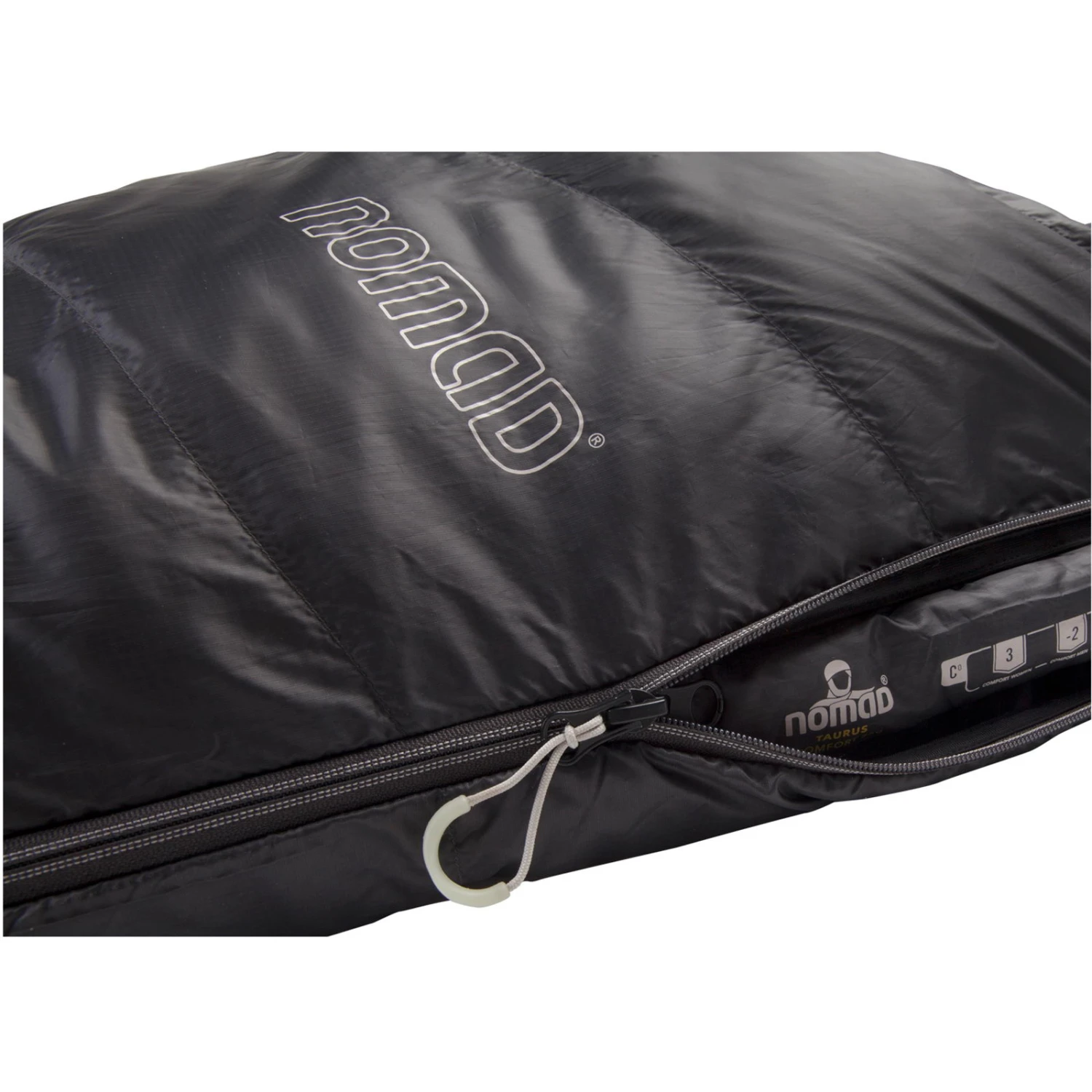 Der NOMAD® Taurus Comfort 550 ist ein 3-Jahreszeiten-Schlafsack in Deckenform mit abnehmbarer Kapuze. Die Füllung besteht aus einem Gemisch von wasserabweisenden Daunen mit Polyester und das Futter wurde mit Polygiene® behandelt. Dieser leichte und kompakte Schlafsack verfügt u. a. über einen gefütterten Zugluftstreifen und einen nicht klemmenden Reißverschlussschieber, der im Dunkeln leuchtet. Er kann auch über den Reißverschluss an einem zweiten Schlafsack befestigt und vollständig geöffnet werden. Innen befindet sich ein praktisches Aufbewahrungsfach für Wertgegenstände und die Aufhängeschlaufen erleichtern das Lüften. Zum Lieferumfang des NOMAD® Taurus Comfort 550 gehören ein leichter Kompressionsbeutel und ein Mesh-Beutel zur Aufbewahrung.