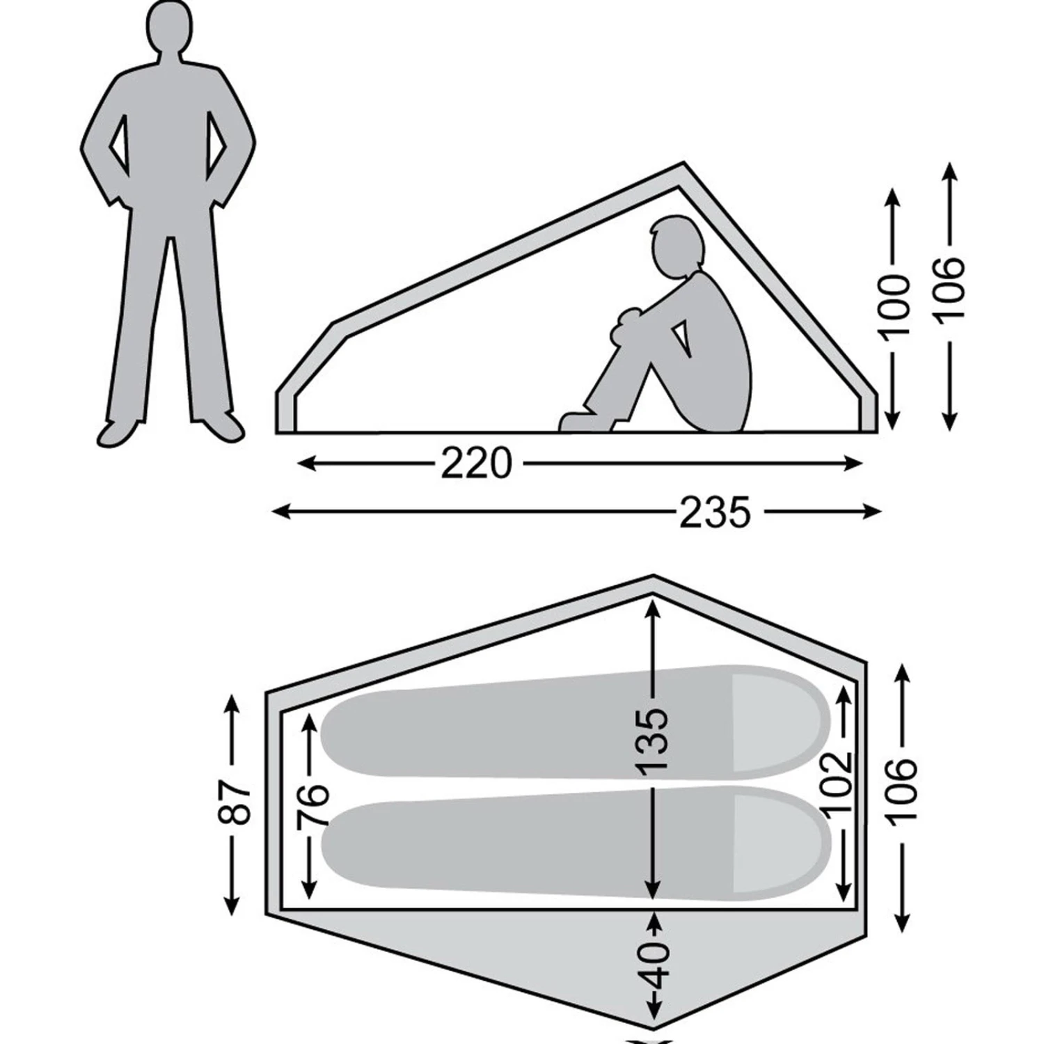 | Maße Außenzelt ca. | 235 x 185 x 106 cm |