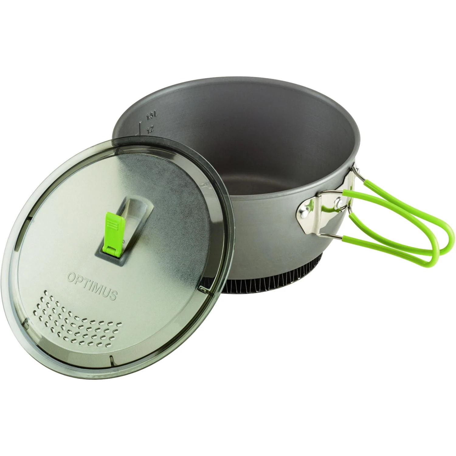 Der Optimus Terra Xpress HE Kochtopf mit 1,75 Liter Volumen besitzt eine Antihaftbeschichtung und ist perfekt wenn Kochgeschirr mit niedrigem Gewicht gefragt ist, der Topf inkl. Deckel wiegt nur 397g. Die Butterfly-Griffe, die beim Kochen absolute Stabilität garantieren, werden eng an den Topf angelegt, damit sich beim Packen nichts verheddern kann. Der praktische transparente Topfdeckel besitzt ein integriertes Sieb, durch dieses kann Wasser super abgegossen werden.