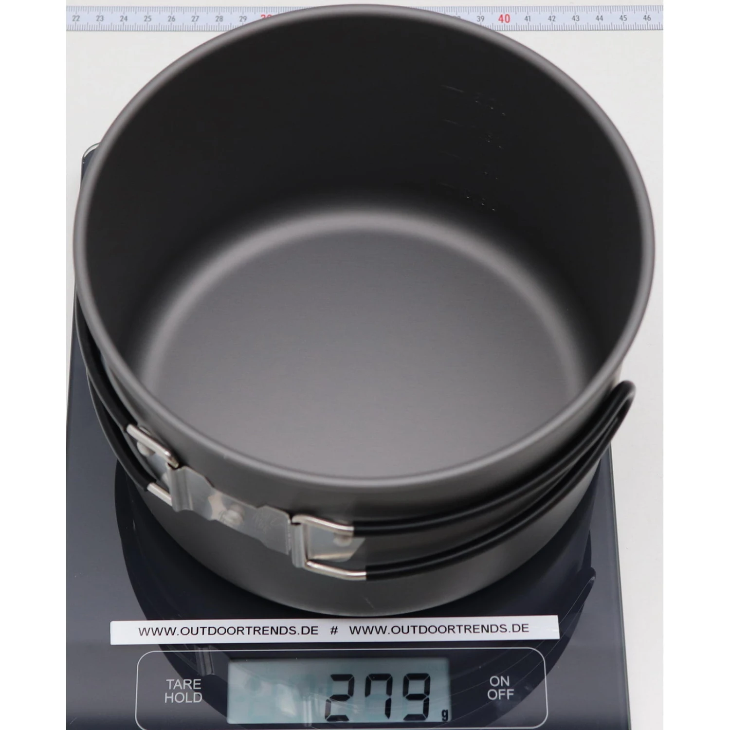 | Gewicht ca. | Packnetz: 27 g, Deckel 1: 62 g, Deckel 2: 68 g, Topf 1: 208 g, Pfanne: 223 g, Topf 2: 279 g, zusammen: 811 g |