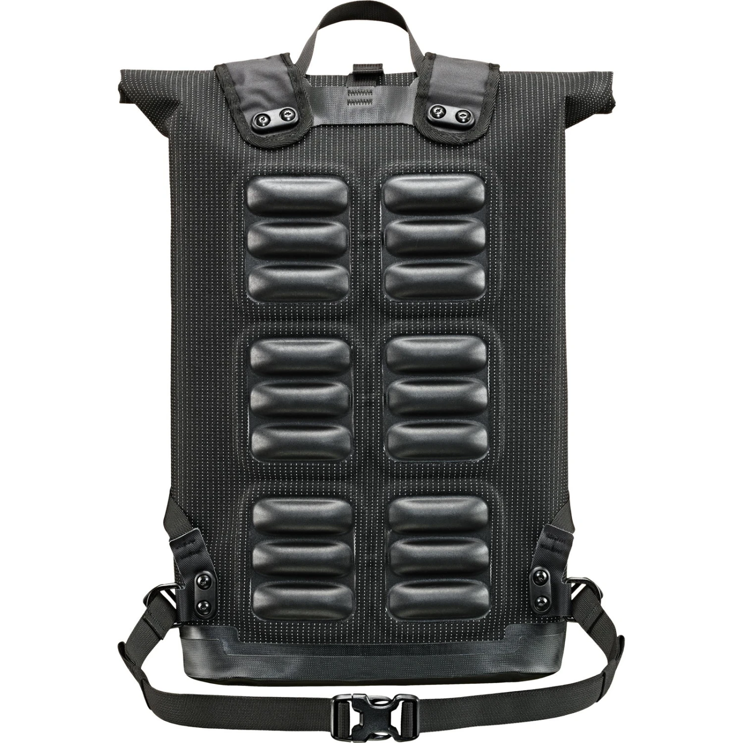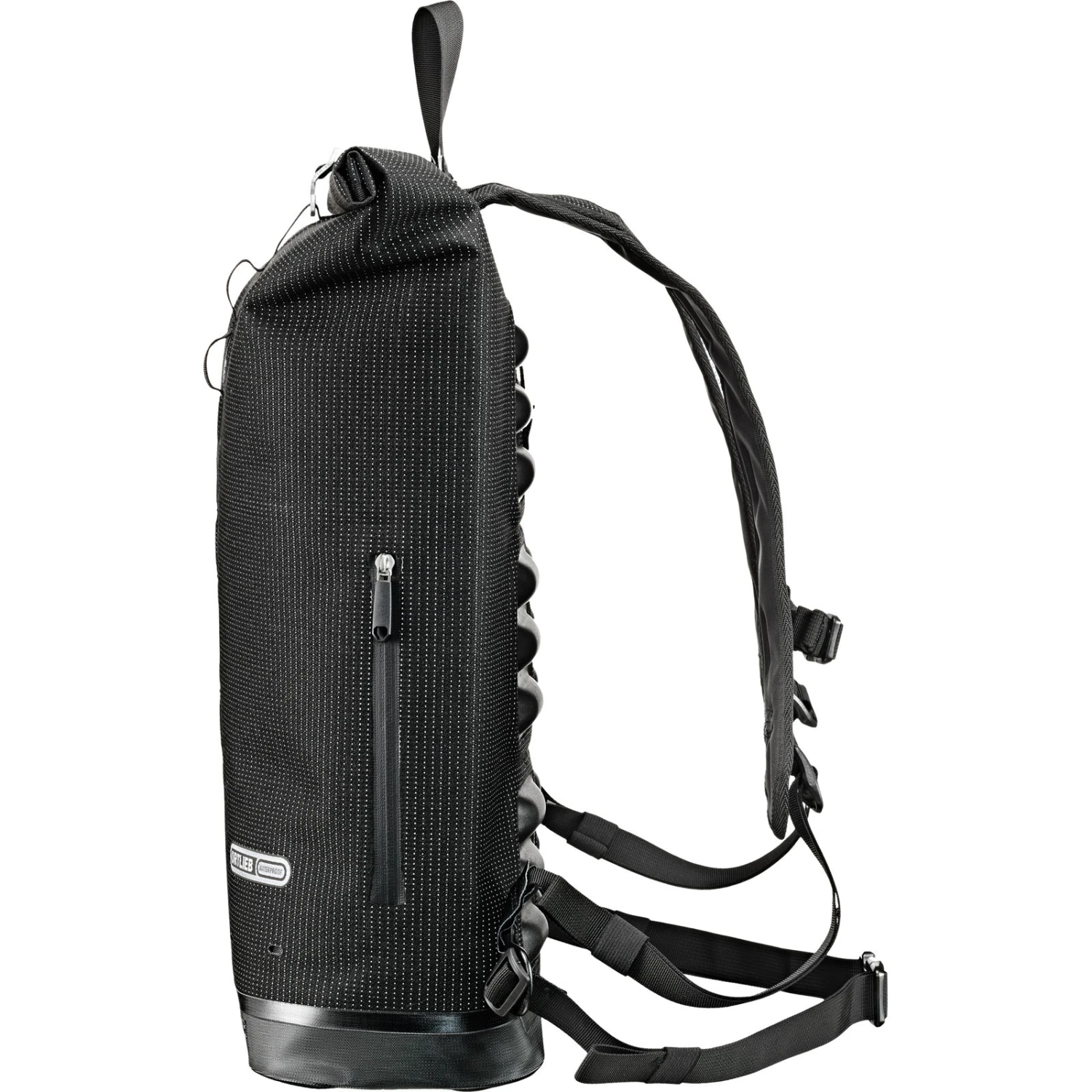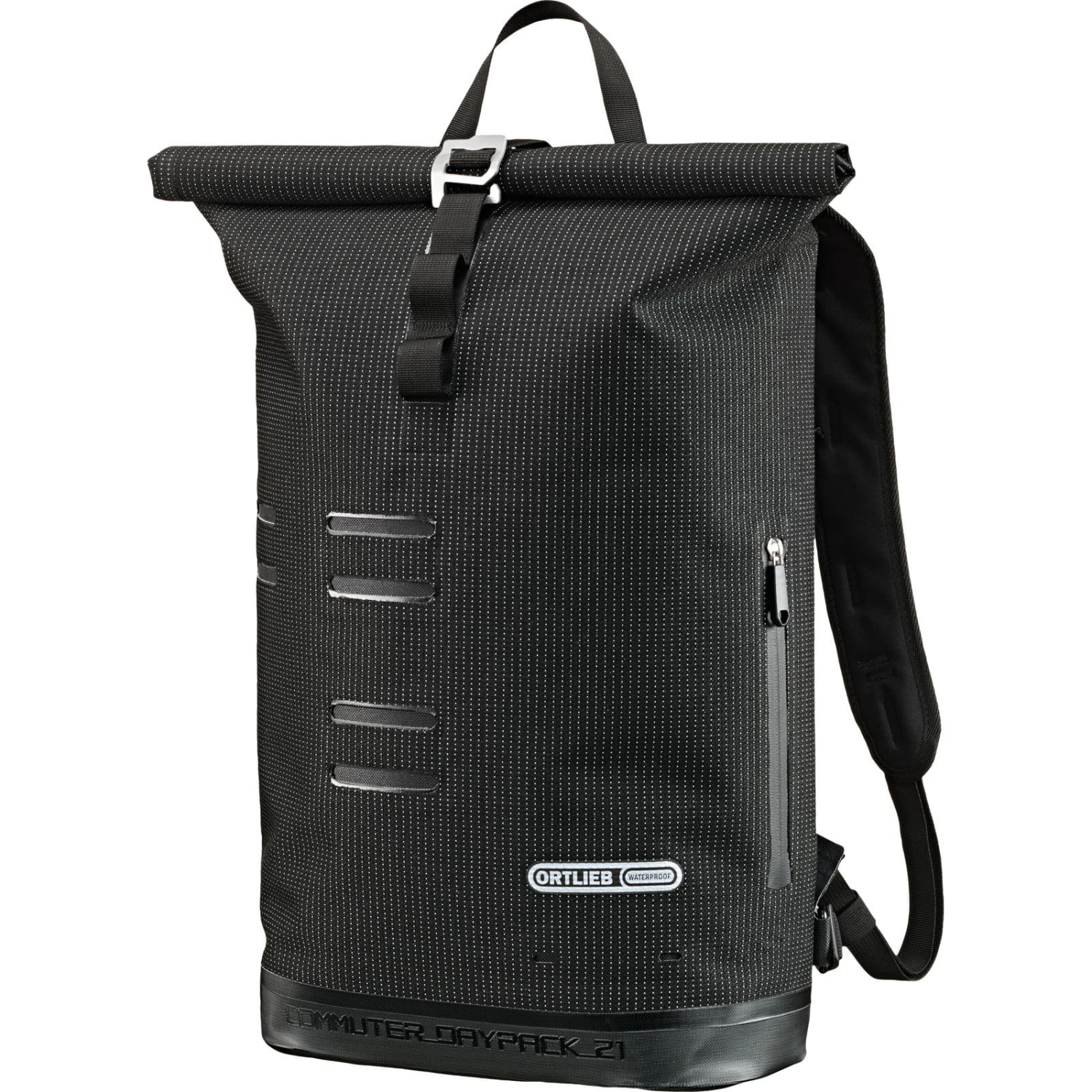 Der Commuter Daypack der High Visibility Linie ist ein Rucksack, der komplett auf die Bedürfnisse trendbewusster Fahrrad-Pendler ausgelegt ist und zudem hohe Sichtbarkeit und Sicherheit im Straßenverkehr bietet. Denn das PUbeschichtete Corduragewebe ist komplett mit einem leuchtstarken Reflexgarn durchzogen. Bei Dunkelheit im Straßenverkehr wird so der komplette Rucksack zum Reflektor, wodurch Fahrradfahrer deutlich früher wahrgenommen werden. Auch in punkto Design überzeugt der Rucksack mit einer schlichten, reduzierten Ästhetik. Ein großes Hauptfach bietet reichlich Stauraum, Notebook oder Tablet finden im gepolsterten Extrafach ihren Platz. Zuverlässigen Schutz vor Nässe bietet der Rollverschluss mit Schnellzugriff. Eine Reißverschluss-Außentasche (nicht wasserdicht), Befestigungslaschen für Bügelschloss und Rücklicht sowie ein Reflexlogo sind weitere Features. Für das extra Plus an Tragekomfort sorgt die eingeschweißte TPU-Rückenpolsterung mit Ventilationskanälen, luftdurchlässigen Trägern und abnehmbaren Brust- und Hüftgurt. Das Tragesystem ist eine ORTLIEB-Entwicklung, komplett hergestellt in Deutschland. Wie alle Produkte der High Visibility Line, ist der Rucksack nachhaltig in Deutschland hergestellt.