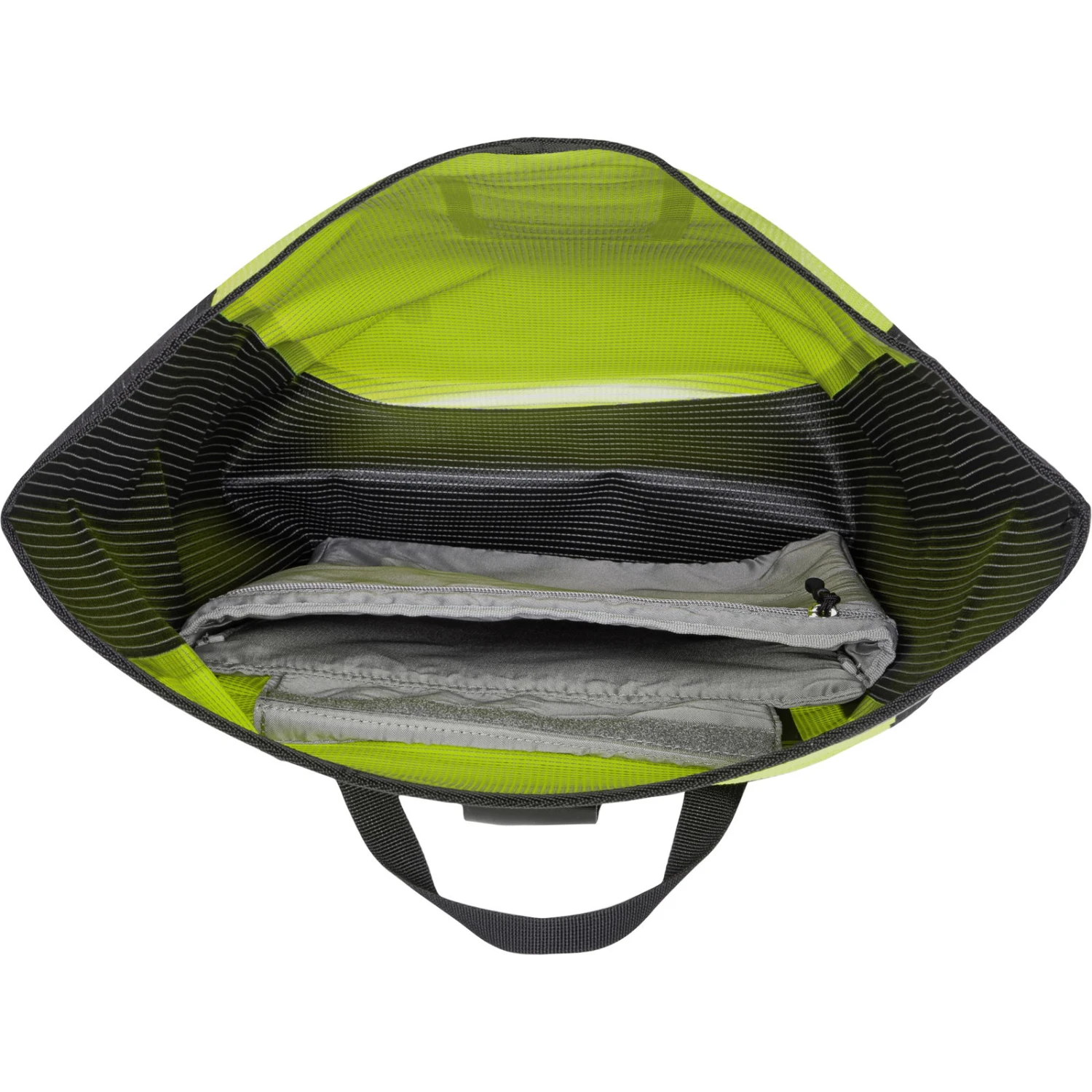 Der ORTLIEB Velocity High Visibility von ORTLIEB ist ein Daypack im Messengerstil mit eingewebtem Reflexgarn. Der handliche Daypack aus der High Visibility Linie bietet hohe Sichtbarkeit und Sicherheit im Straßenverkehr. Denn das PU-beschichtete Corduragewebe ist komplett mit einem leuchtstarken Reflexgarn durchzogen. Bei Dunkelheit im Straßenverkehr wird so der komplette Rucksack zum Reflektor, wodurch Fahrradfahrer deutlich früher wahrgenommen werden. Mit einem Volumen von 23 Litern hat der Velocity High Visibility genau die richtige Größe als Rucksack für Arbeit, Schule oder Uni. Die ausknöpfbare Innentasche mit Reißverschluss bietet Platz für Schlüssel und Kleingeld. Schaumpolsterrücken, anatomisch geformte Träger mit Brustgurt, Hüftgurt und Tragegriff erhöhen den Tragekomfort. Der Kantenschutz an den unteren Ecken schützt vor Abnutzung. An der Klettpatte kann zusätzlich ein Rücklicht oder der Fahrradhelm befestigt werden.