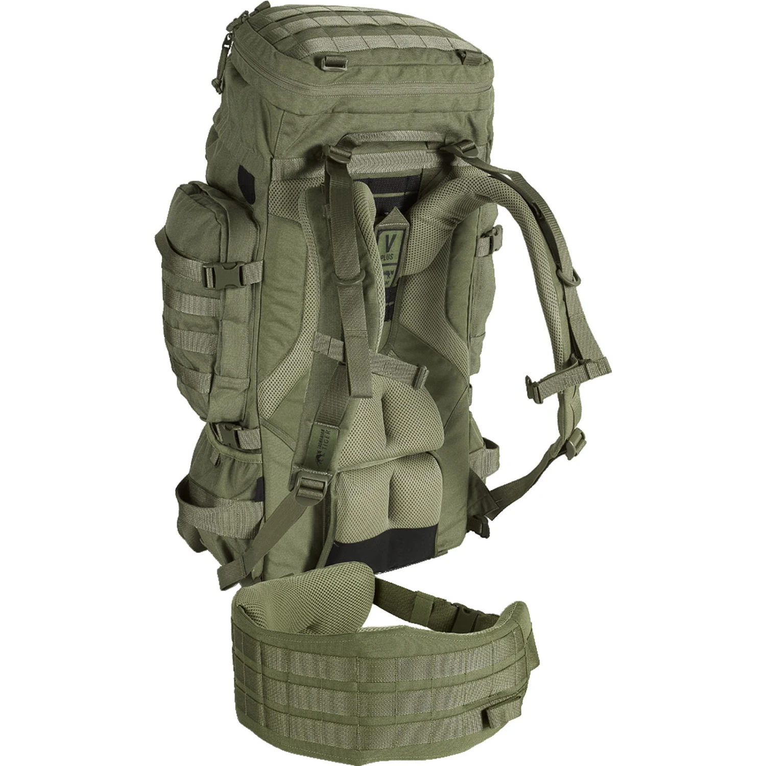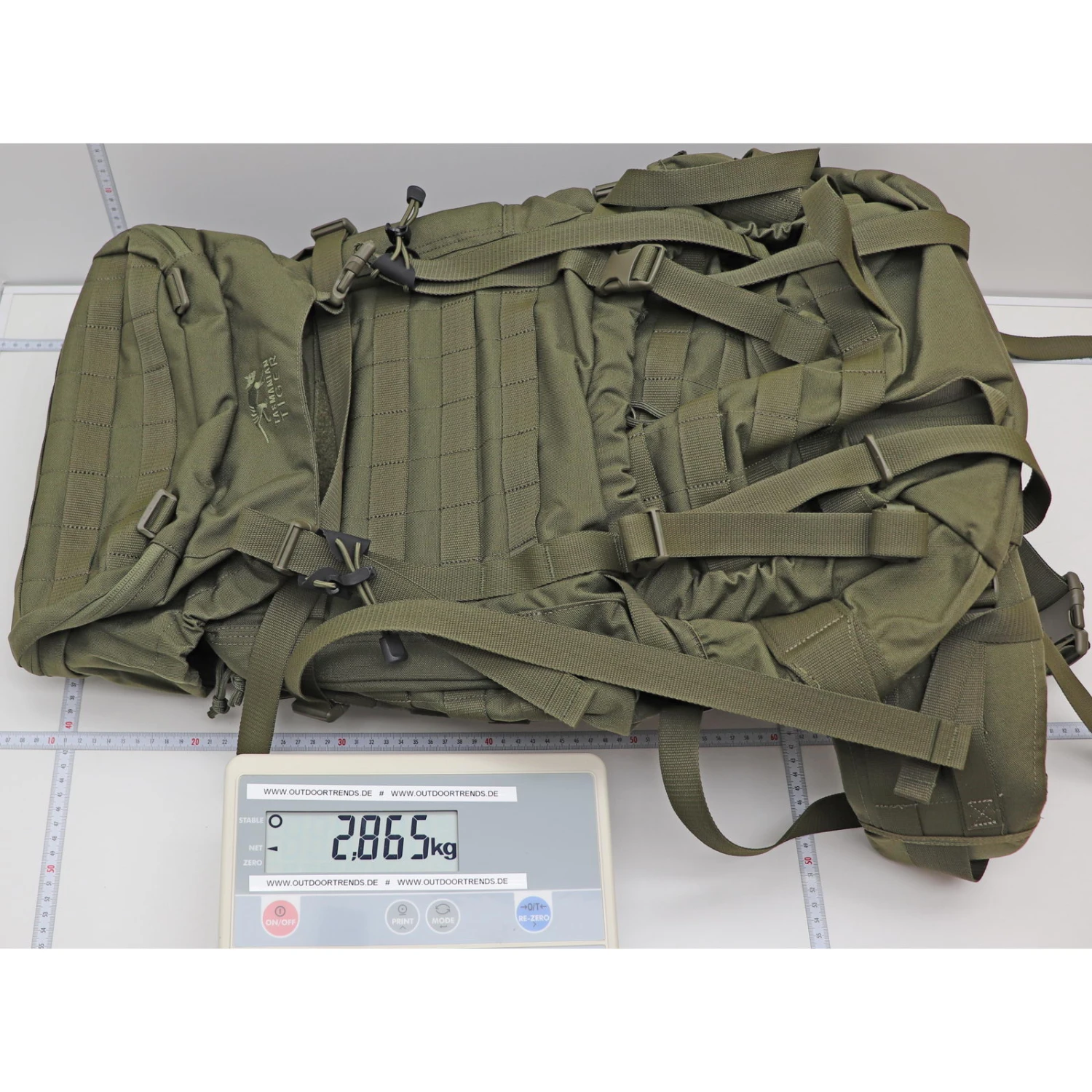 | Merkmale | abnehmbarer Hüftgurt, Antennendurchlässe am Hauptfach, Bodenfach mit separatem Zugang von außen, Brustgurt abnehmbar, Deckelfach mit Reißverschluss außen, Deckelfach mit Reißverschluss innen, diverse Materialschlaufen, Einschubfach innen, gepolsterter Hüftgurt, Halterung für Trinkblase, höhenverstellbarer Brustgurt, Lastkontrollriemen, Materialschlaufen auf dem Deckel, MOLLE-System auf allen wichtigen Befestigungsflächen, Schlauchdurchführung für Trinksystem, Seilfixierung unter dem Deckel, Seitentaschen mit MOLLE-System außen, seitliche Kompressionsriemen, seitliche Skibefestigung (Skibreite max. 130 mm), seitliche Tragegriffe, Tragegriff hinten oben, umlaufende Bodenkompression, verstellbare Rückenlänge, Wanderstock-/ Eisaxthalterung, Zwischenboden zwischen Bodenfach und Hauptfach kann geöffnet werden |
