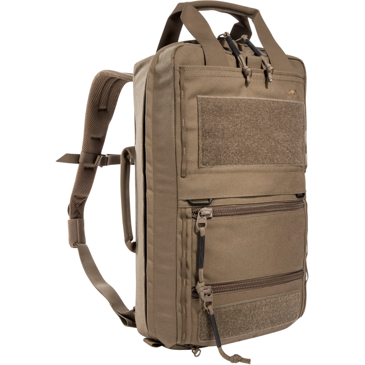 Der Survival Pack von Tasmanian Tiger bietet die passende Größe und Ausstattung für die persönliche Ausrüstung und die wichtigsten Überlebens-Utensilien. Im vollständig aufklappbaren Hauptfach stehen sechs unterschiedlich große Innentaschen mit transparentem Deckel und beschriftbaren Klettstreifen zur Verfügung. Davon sind zwei Taschen herausnehmbar (4 und 2,5 Liter) und vier fest (1 x 6 Liter, 1 x 2,5 Liter und 2 x 0,5 Liter). Das Hauptfach ist zusätzlich mit einer großen MOLLE-Klettfläche ausgestattet, die eine individuelle Bestückung ermöglicht. Im Bodenfach befindet sich eine beidseitig verwendbare Regenhülle (eine Seite mit Streifen in Signal-Orange) sowie eine Stoffflagge zur Sichtmarkierung. Zwei flache Reißverschlusstaschen an der Vorderseite können z.B. zur Unterbringung von Dokumenten genutzt werden. An der Vorderseite können zudem weitere Taschen oder Panels in die vorhandenen Haken eingehängt werden. Klettflächen und Daisy Chain auf der Front ermöglichen zusätzlich eine individuelle Erweiterung. Die Schultergurte und Tragegriffe lassen sich leicht verstauen, wenn der Rucksack in Fahrzeugen untergebracht wird. Der Survival Rucksack ist zudem mit einer Trinksystemvorbereitung ausgestattet.