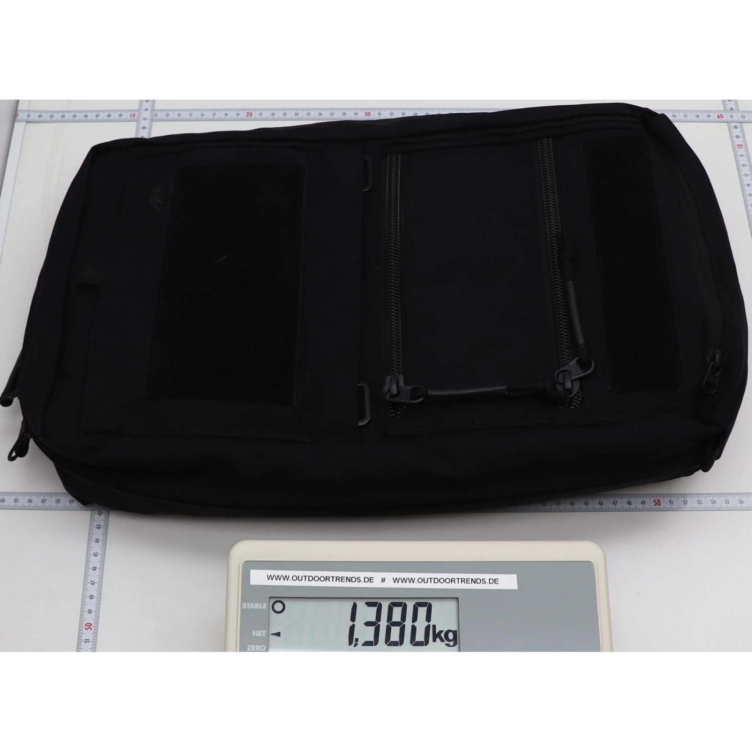 | Merkmale | Brustgurt abnehmbar, Daisy Chain auf der Front, diverse Materialschlaufen, große MOLLE-Klettfläche innen, Halterung für Trinkblase, höhenverstellbarer Brustgurt, inklusive beschriftbarer Klettstreifen, Innenaufteilung mit diversen unterschiedlichen Befestigungsmöglichkeiten für Ausrüstung, integrierte Wende-Regenhülle und Stoffflagge in Signal-Orange in separater Reißverschlusstasche am Boden, Klettfach am Rücken (nimmt bei Bedarf die Schultergurte auf), Klettfläche auf der Front (Flausch), Schlauchdurchführung für Trinksystem, separates Fach für Trinksystem im Hauptfach, umlaufender Reißverschluss zur kompletten Öffnung des Hauptfachs, verstaubare Schultergurte und Tragegriffe, vier feste Innentaschen mit Reißverschluss und transparentem Deckel, zwei Frontfächer mit Reißverschluss, zwei Haken zur Befestigung zusätzlicher Taschen an der Vorderseite, zwei herausnehmbare, einklettbare Innentaschen mit Reißverschluss und transparentem Deckel, zwei seitliche Tragegriffe, zwei Tragegriffe oben (einer vorne, einer hinten) |