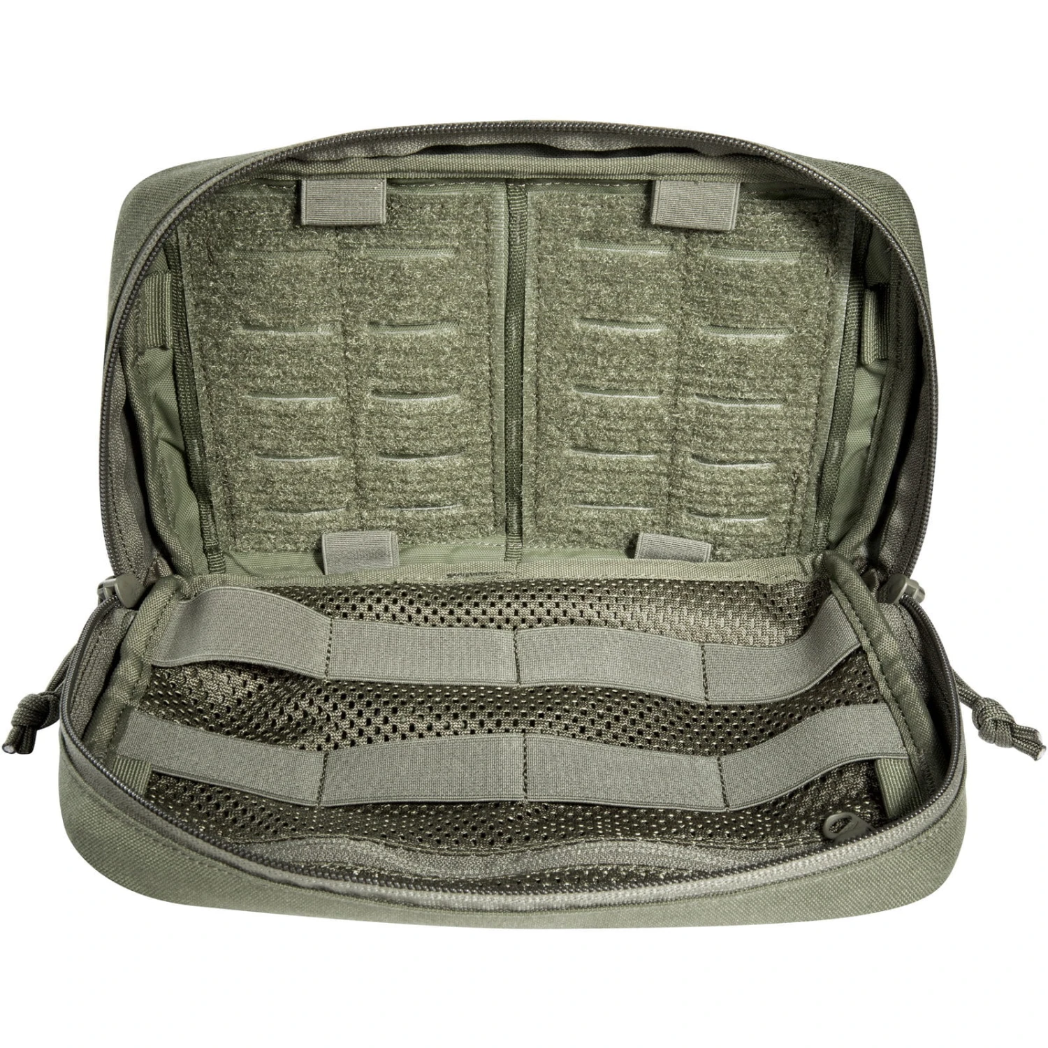 Die Tac Pouch 8.1 Hip von Tasmanian Tiger ist eine universell einsetzbare Ausrüstungstasche mit abnehmbarem Hüftgurt. Die Tasche verfügt über ein abnehmbares MOLLE-Reverse-System zur Befestigung an Plattenträgern und Rucksäcken. Außerdem kann sie mit Schlaufen am Tasmanian Tiger Survival Pack oder an anderen MOLLE-Flächen mit entsprechenden Schnallen eingehängt werden. Die Gürteltasche ist zusätzlich mit einem Durchlass für einen 50 mm-Gürtel ausgestattet. Im Inneren befinden sich eine Netztasche mit Reißverschluss , elastische Schlaufen und eine große MOLLE-Klettfläche für modulare Erweiterungen. Die Tac Pouch 8.1 Hip hat zusätzlich eine Reißverschlusstasche und Daisy Chain auf der Vorderseite.