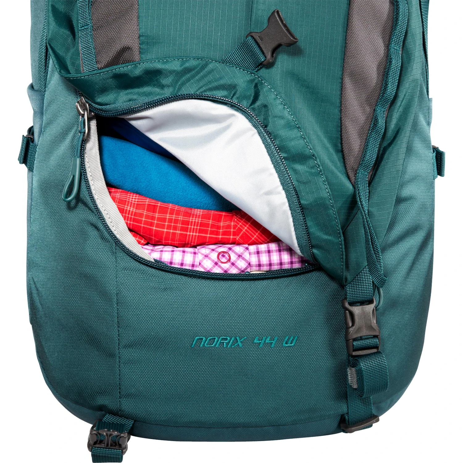 Der Damen-Rucksack Norix 44 Women besitzt ein bequemes und flexibles Tragesystem, das eine gute Bewegungsfreiheit ermöglicht. Mit seinem Volumen von 44 Litern ist er bestens für Hüttentouren und Wochenendtrips geeignet. Das angenehm leichte und flexible Tragesystem des Norix 44 Women lässt sich an die eigene Rückenlänge anpassen und bietet eine solide Lastableitung in den Hüftbereich. Somit werden Schultern und Rücken entlastet. Es ist für ein Gewicht bis 15 Kilogramm ausgelegt. Der Tourenrucksack ist mit einer praktischen Unterteilung in Haupt- und Bodenfach versehen, Seitentaschen, eine Fronttasche und diverse Materialschlaufen dienen der Unterbringung weiterer Ausrüstung.