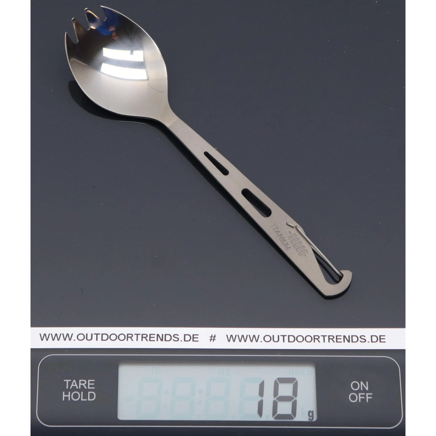 Das Eagle Spork von VARGO ist ein stabiles, teilweise poliertes und sehr leichtes Titan Gabel-Löffel Besteck mit Möglichkeit zur Fixierung.