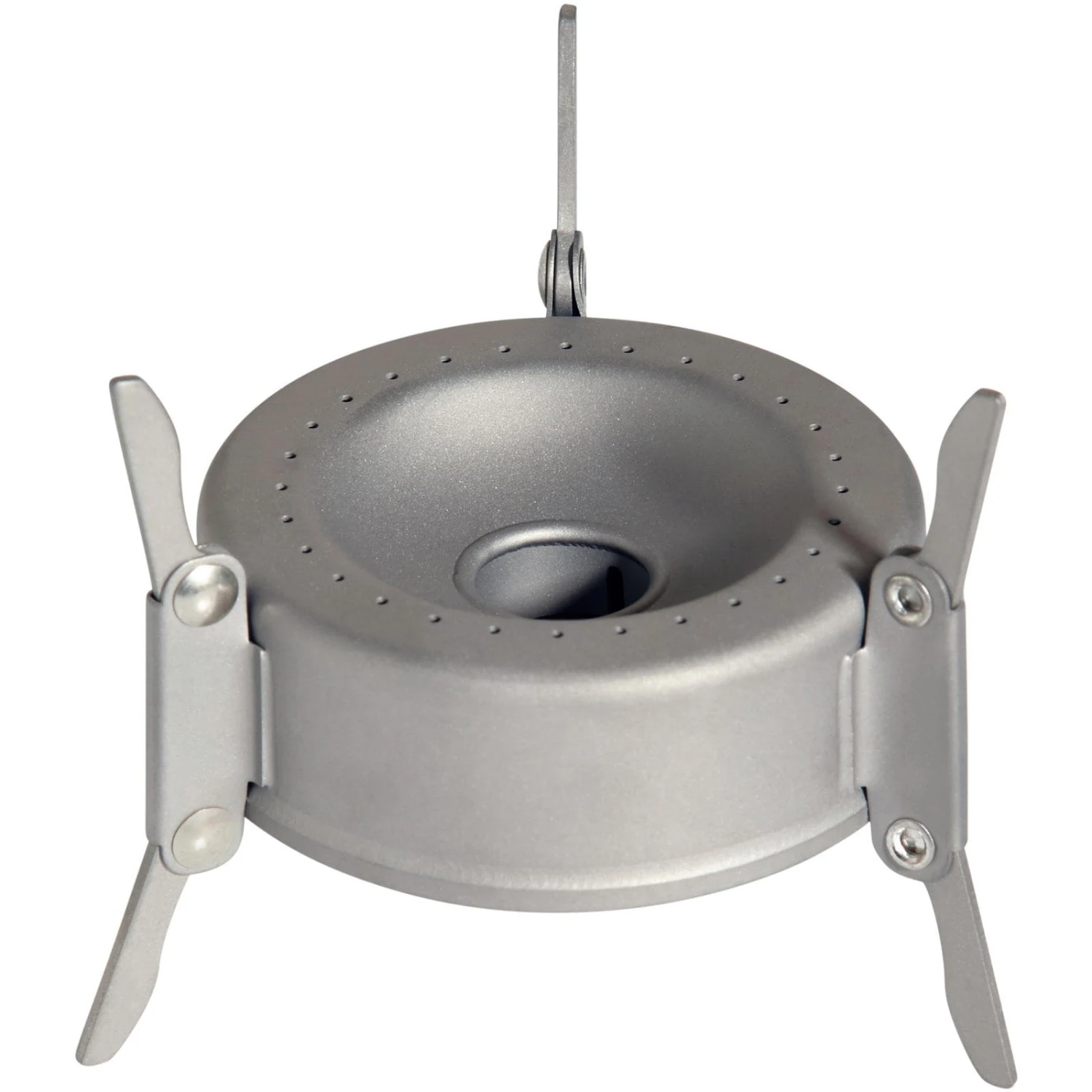 Aus ultraleichtem, hochwertigem Titan hergestellt bietet der Vargo ‚Triad‘ den Freunden des Minimalismus einen neuen Rekord. Die Füße und Topfauflagen des Kochers sind ausklappbar und bieten einem kleinen Topf ausreichend Standfestigkeit. Auf weichem Untergrund können die Füße einfach in den Boden gesteckt werden. Mit einer Füllung Spiritus brennt der Kocher ca. 20 Minuten. Zum Abschütten des restlichen Spiritus zurück in die Flasche dient einer der Topfauflagen als Abtropfvorrichtung. Pfiffig bis ins Detail und ein echter Outdoorkocher. Der belastet das Gepäck wirklich unmerklich und sorgt für frischen Kaffee oder das heiße Wasser Ihrer Trockenmahlzeit – egal wo.