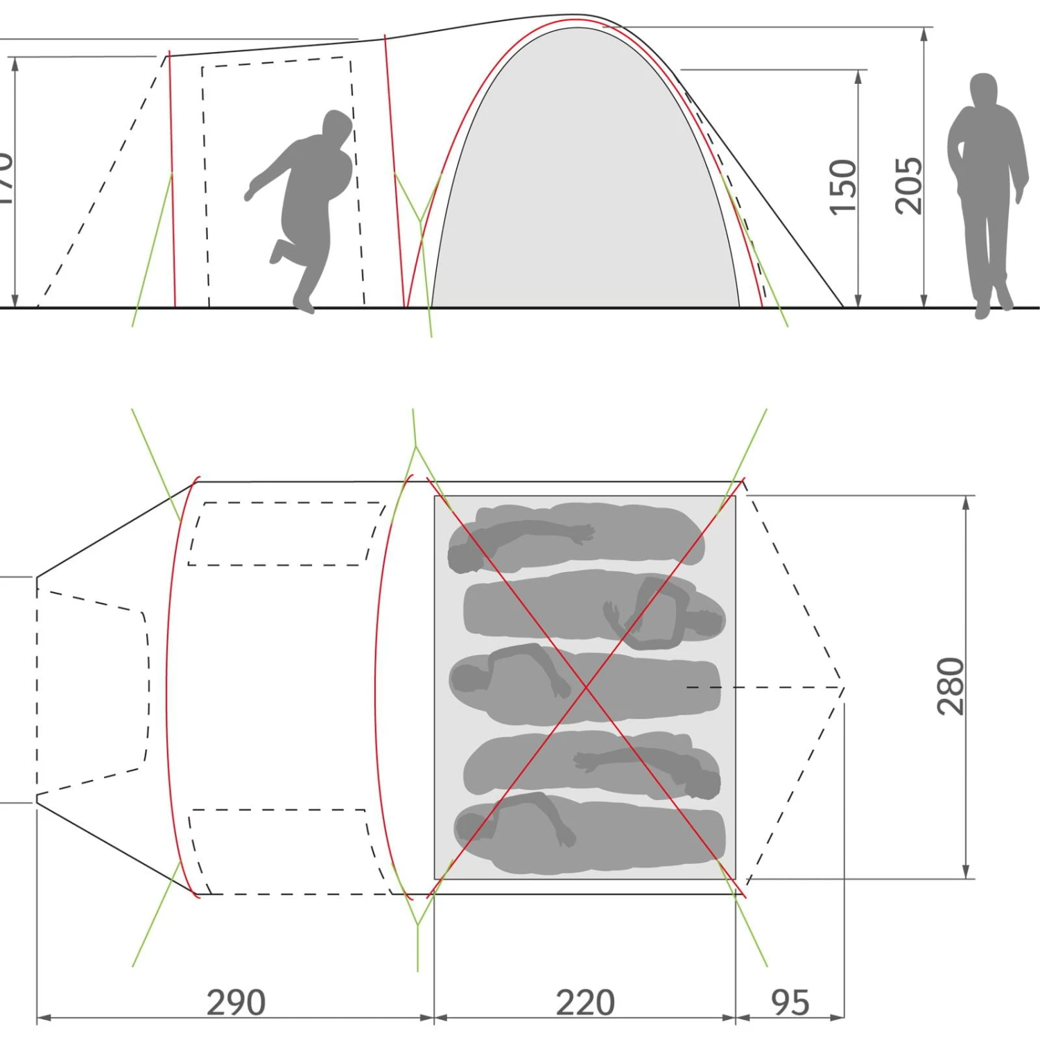 | Maße Außenzelt ca. | 605 x 290 x 215 cm |