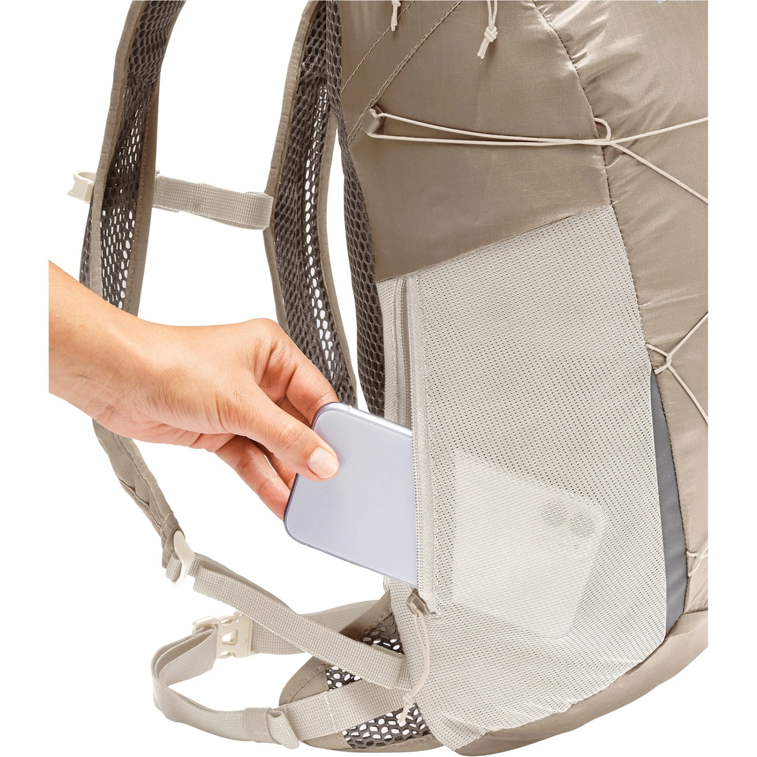 | Merkmale | ein elastisches Einschubfach seitlich, ein elastisches Reißverschlussfach seitlich, Einschubfach innen, Halterung für Trinkblase, höhenverstellbarer Brustgurt, Kordelzugbefestigung vorne drauf, Materialschlaufen auf den Schulterträgern für Brille etc., reflektierende Elemente, Regenhülle im Hauptfach, Reißverschlussfach vorne oben, Schlauchdurchführung für Trinksystem |
