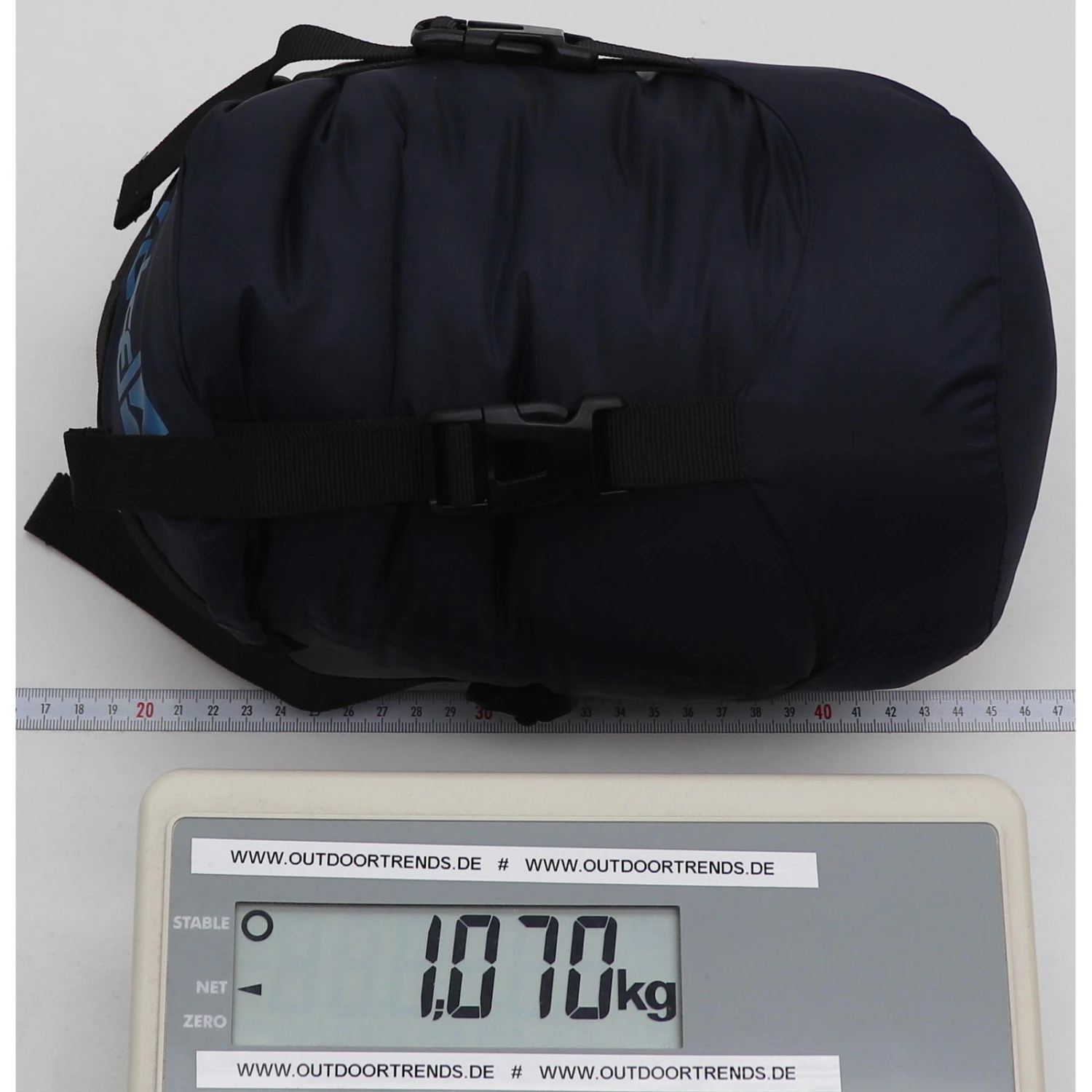 | Merkmale | dank umlaufendem Reißverschluss auch als Decke verwendbar, gefüllte Abdeckleiste, inklusive Kompressions-Packsack, Innentasche für Wertsachen, Kapuze mit Kordelzug, PFC-frei, umlaufender Reißverschluss |