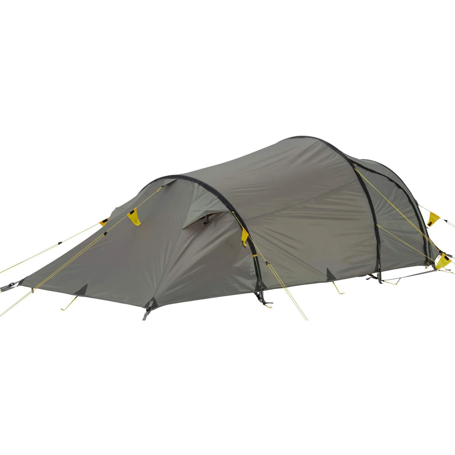 In seiner Art unverwechselbar: Eines der erfolgreichsten Modelle von Wechsel Tents: das Outpost 2 ist seit Beginn an im Zelt Programm von Wechsel. Sehr geräumig für 2 Personen. Der einzigartige Innenzeltschnitt bietet auch einer sehr großen Person einen komfortablen Schlafplatz. Es bietet die Vorteile einer asymmetrischen Tunnelzeltform wie z.B. relativ geringes Gewicht und hohe Sturmstabilität bei großer Apsis und geräumigem Innenzelt. Es hat einen regengeschützten, abdeckbaren Moskitogaze-Innenzelteingang in D-Form und eine große Apsis mit zwei Eingängen. Die großflächige Dachlüftung der Apsis, die sich vom vorderen bis zum mittleren Gestängebogen erstreckt, verbessert deutlich die Belüftung. Um die Abdeckung dieser Fläche zu realisieren, wurde das Zelt mit effizient zu handhabenden außen liegenden Gestängekanälen versehen. Das Innenzelt bietet viel Platz für zwei Personen und ist mit einer rückwärtigen Ventilation und vielen Taschen versehen. Der seitliche Eingang und ein vorderer Eingang machen das Handling mit Gepäck einfach. Bei aufgerolltem vorderen Eingang bietet sich ein hervorragender Panoramablick aus dem Zelt. Im Vergleich zum Modell bis 2018 verzichtet Wechsel Tents auf die Dachlüftung im Apsisbereich.